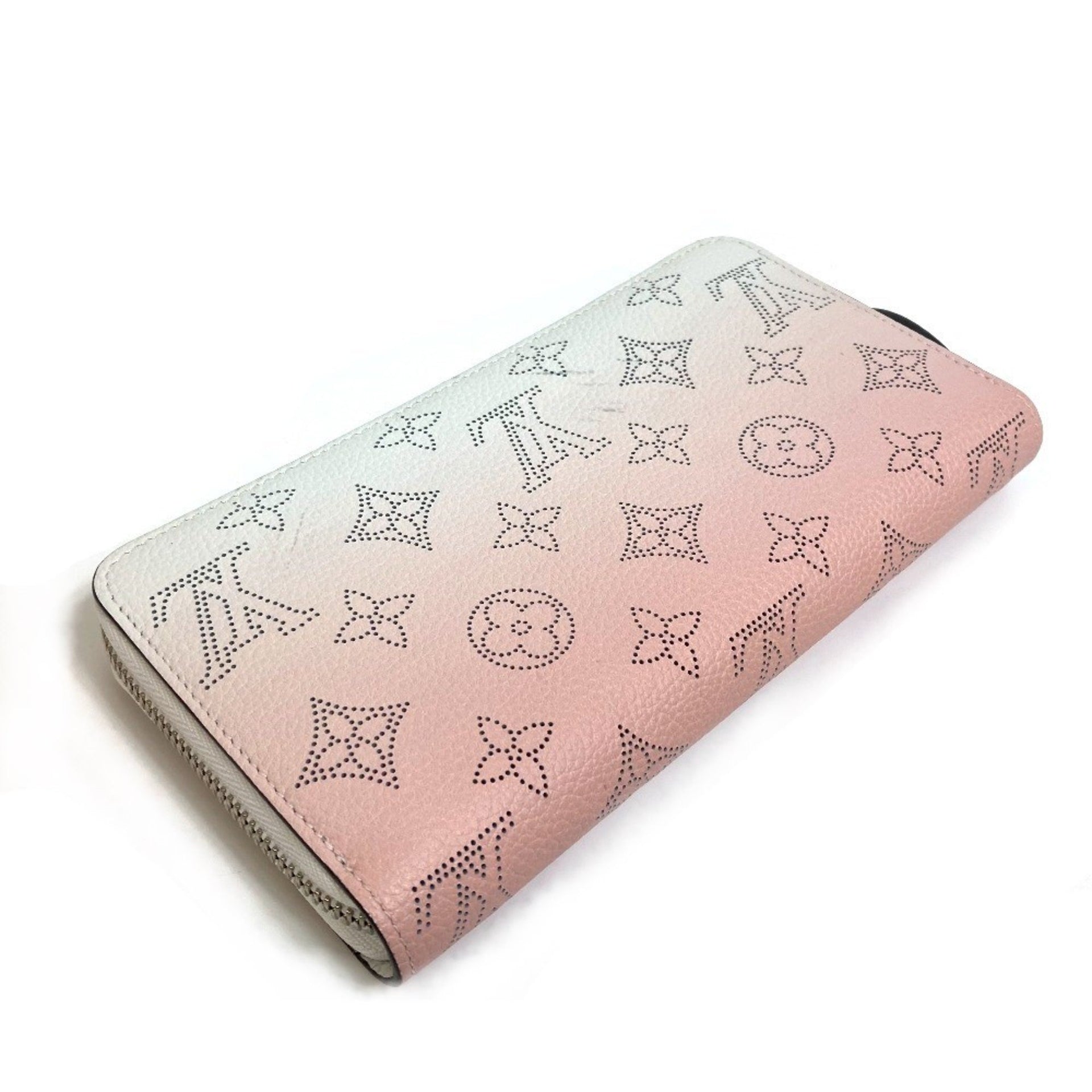 LOUIS VUITTON M80490 Monogram Mahina Gradient Zippy Wallet, Round Zipper Long Leather, Women\'s, Pink and White