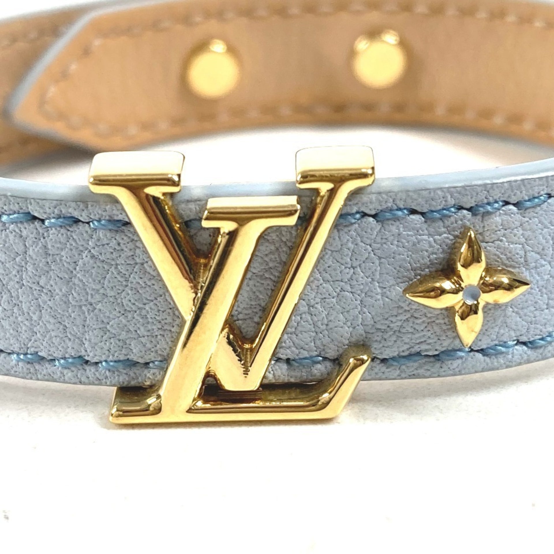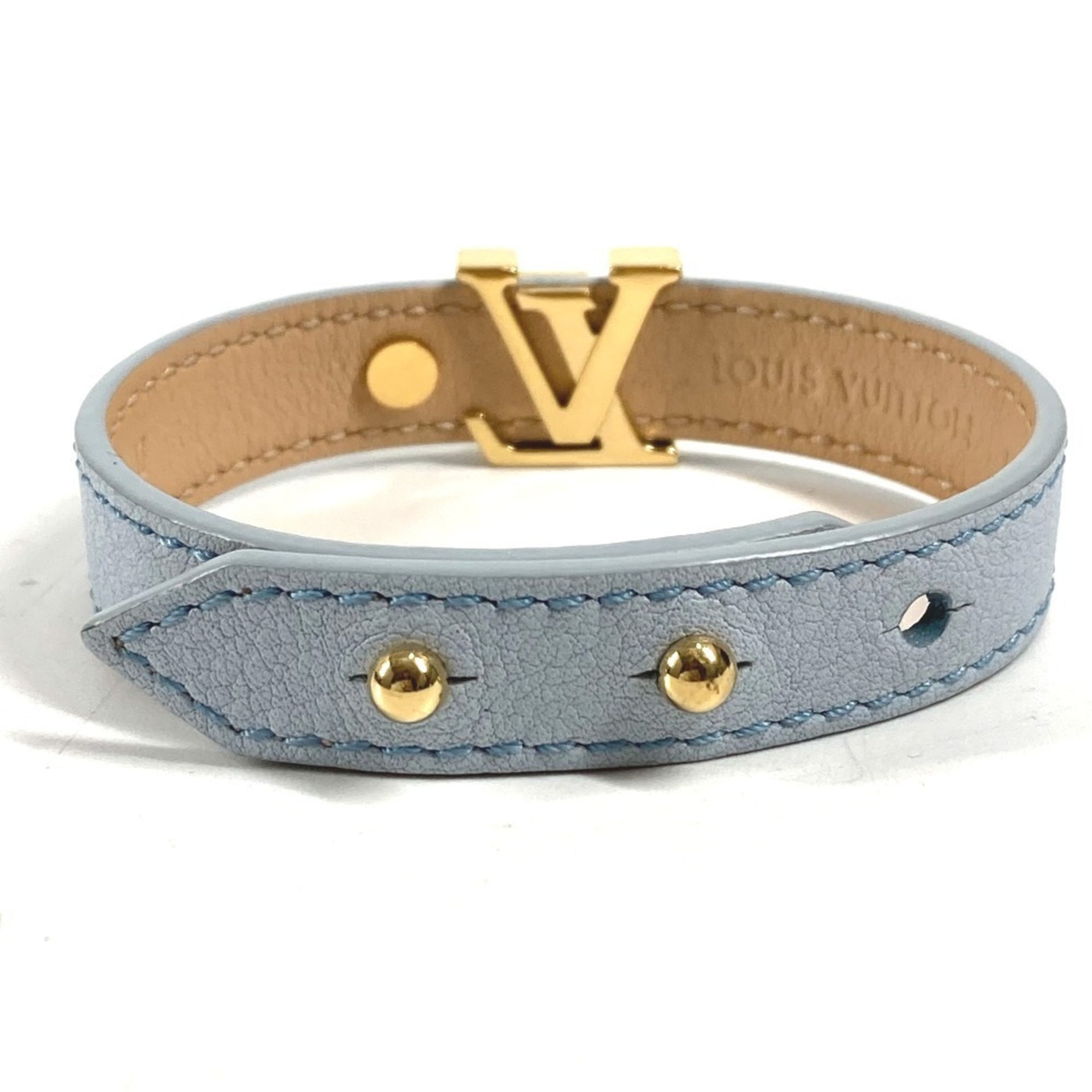 LOUIS VUITTON M8104F Bracelet LV Iconic Accessory Leather Men\'s Women\'s Light Blue Like New