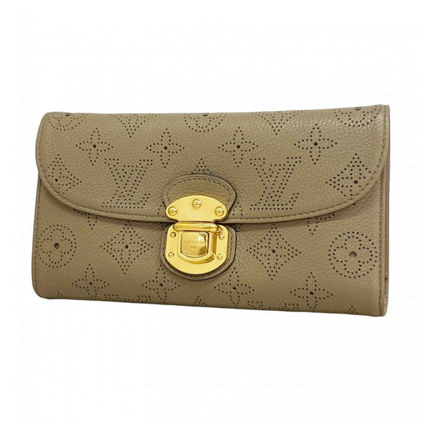 Louis Vuitton Mahina Portefeuille Amelia Tri-fold Long Wallet M93761 Taupe Women\'s