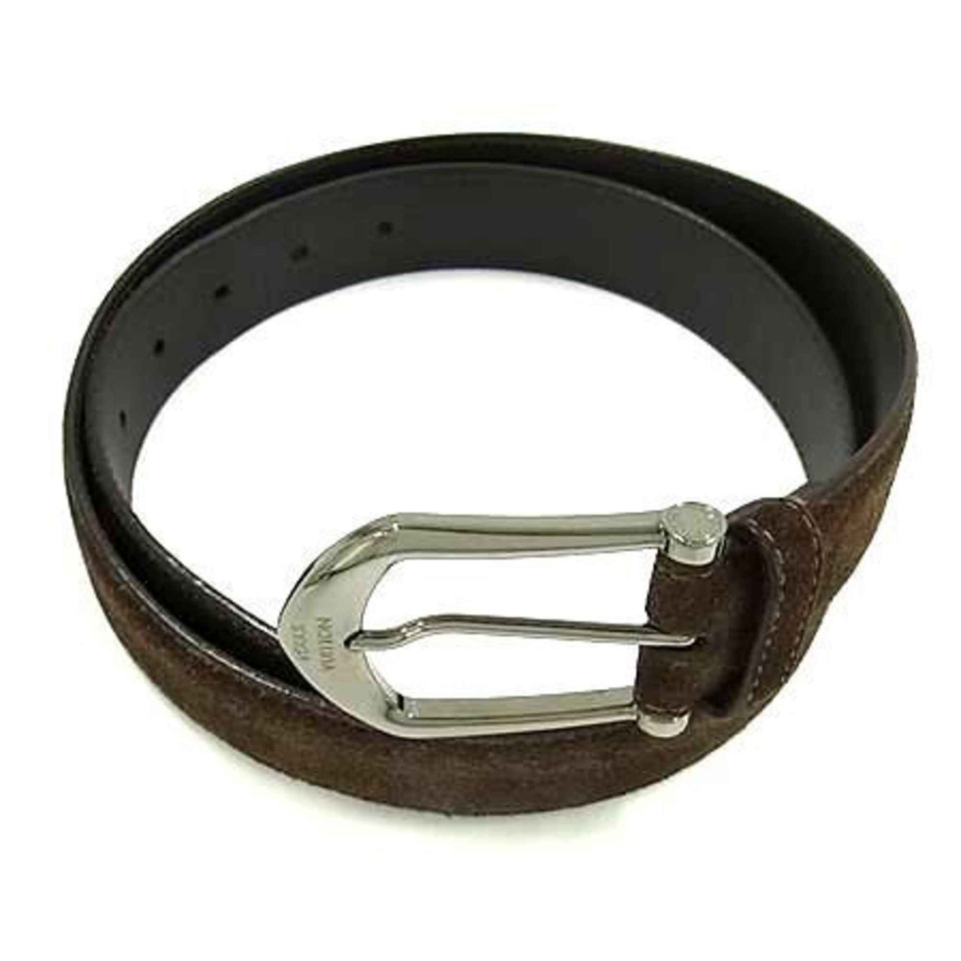 LOUIS VUITTON Men\'s Santur Rivet Belt M6836U Brown Suede and Leather
