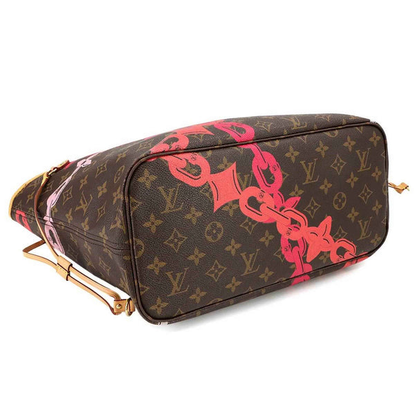 Louis Vuitton Monogram Bay Neverfull MM Tote Bag, Brown and Fuchsia, M41991, Gold Hardware