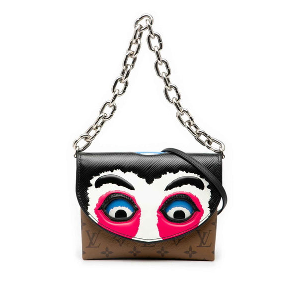 Louis Vuitton Monogram Chet Kabuki Mask, featuring the Kansai Yamamoto character. This 2-way handbag/shoulder bag (M43532) is available in brown and multicolored leather. Women\'s.