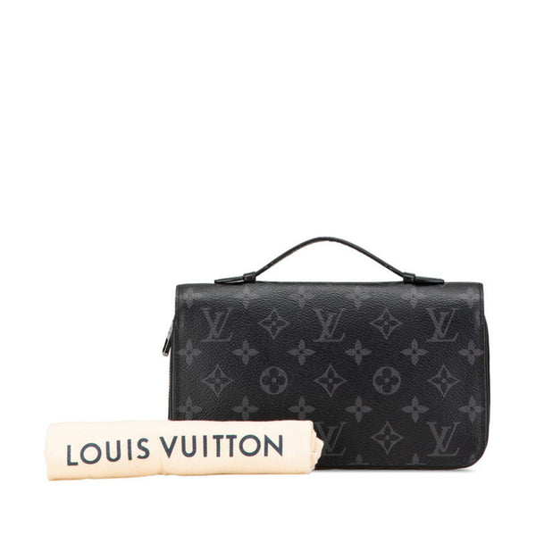 Louis Vuitton Monogram Eclipse Zippy XL Round Zipper Long Wallet M61698 Black PVC Leather Men's LOUIS VUITTON