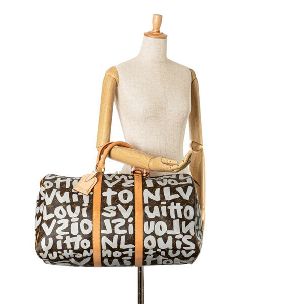 Louis Vuitton Monogram Graffiti Keepall 50 Boston Bag M92197 Argent Brown PVC Leather Women's LOUIS VUITTON