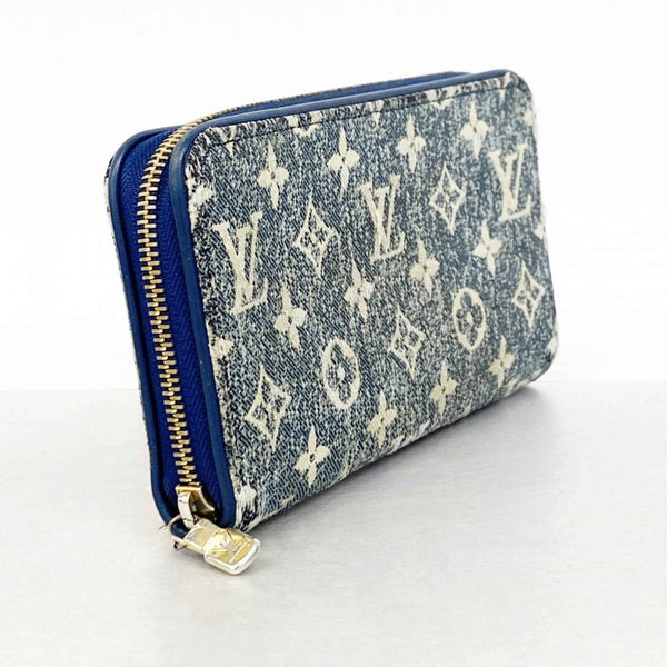 Louis Vuitton Monogram Jacquard Denim Zippy Wallet M81226 Blue Men\'s and Women\'s