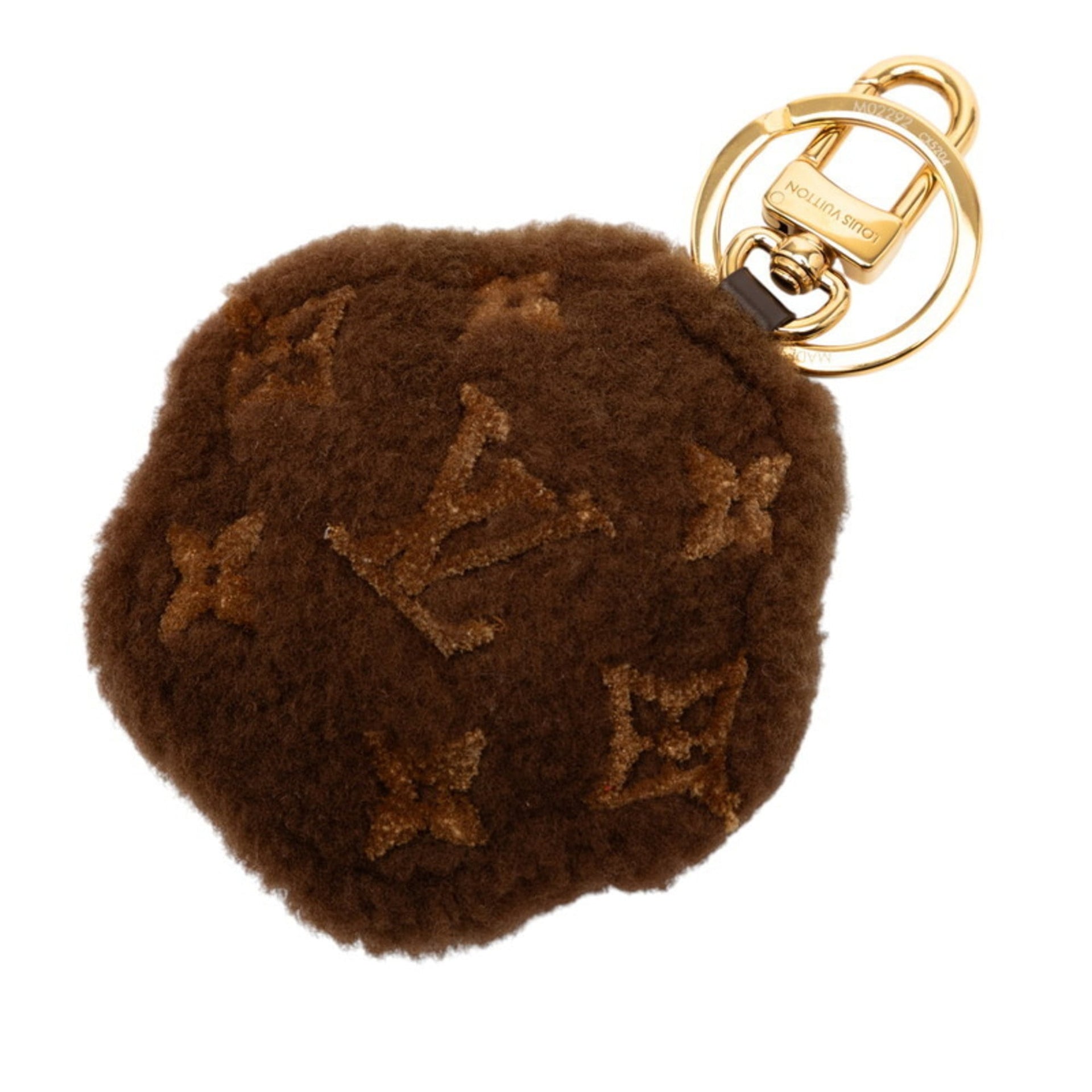 Louis Vuitton Monogram Keychain LV Pau Keyring M02292 Brown Wool Leather Women\'s LOUIS VUITTON