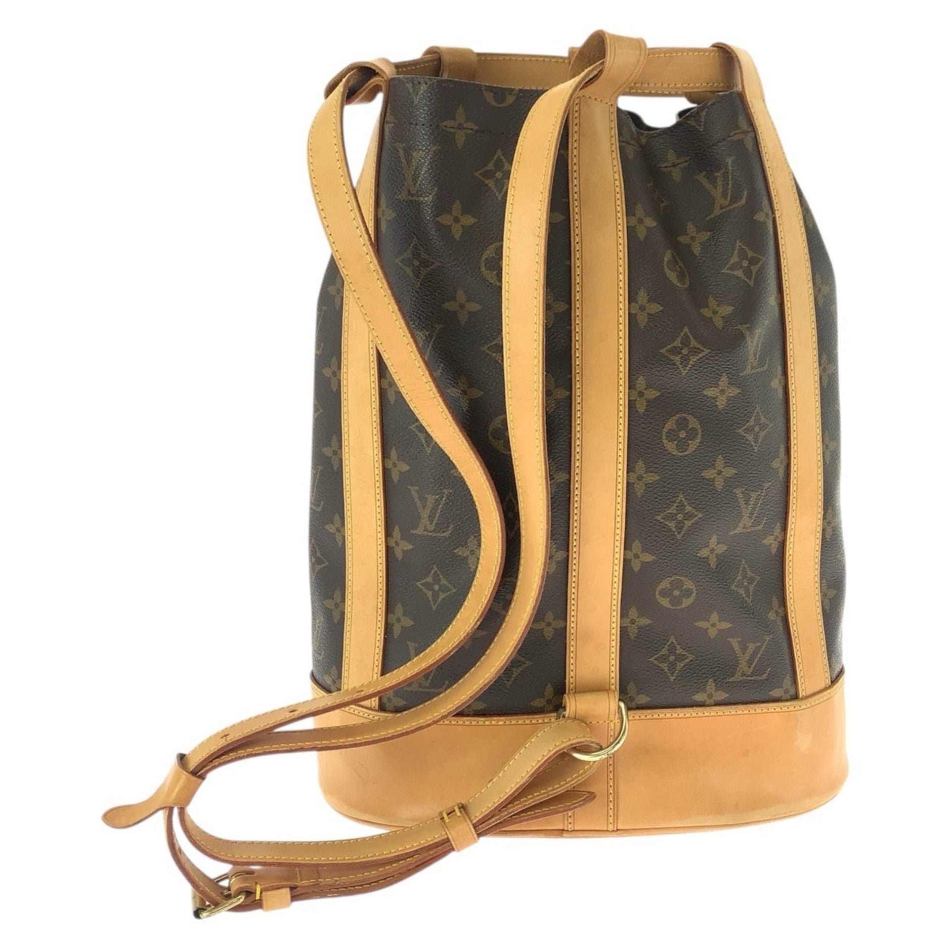 LOUIS VUITTON Monogram Randonne PM Brown Leather with Gold Hardware, M42243, One-Shoulder Drawstring Shoulder Bag, Women\'s
