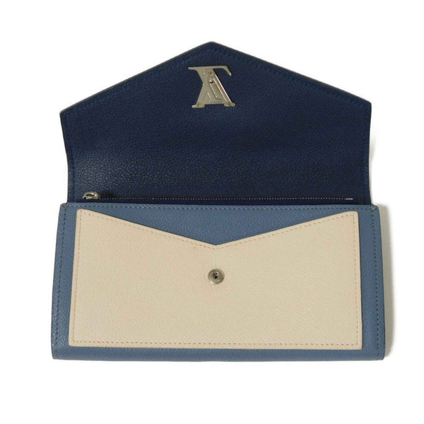 Louis Vuitton My Lock Me Portefeuille Long Wallet with LV Signature Beige Two-Tone Snap Buttons and Blue Jean M62544 for Men Women