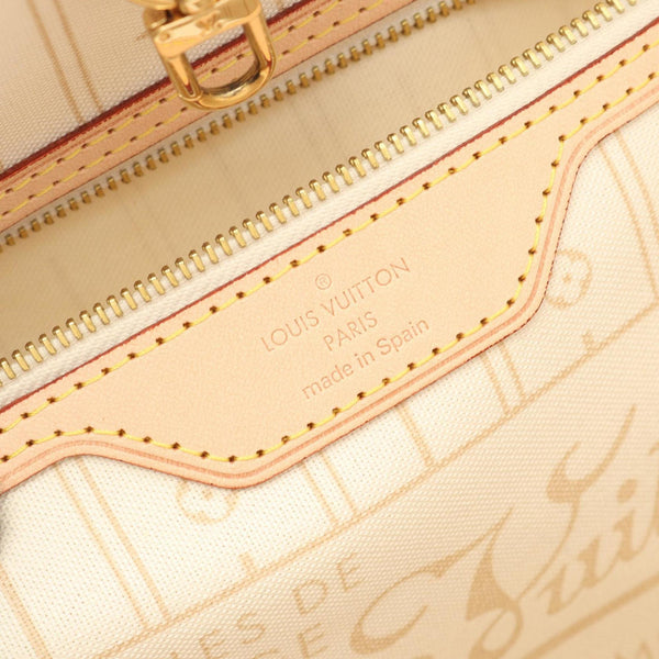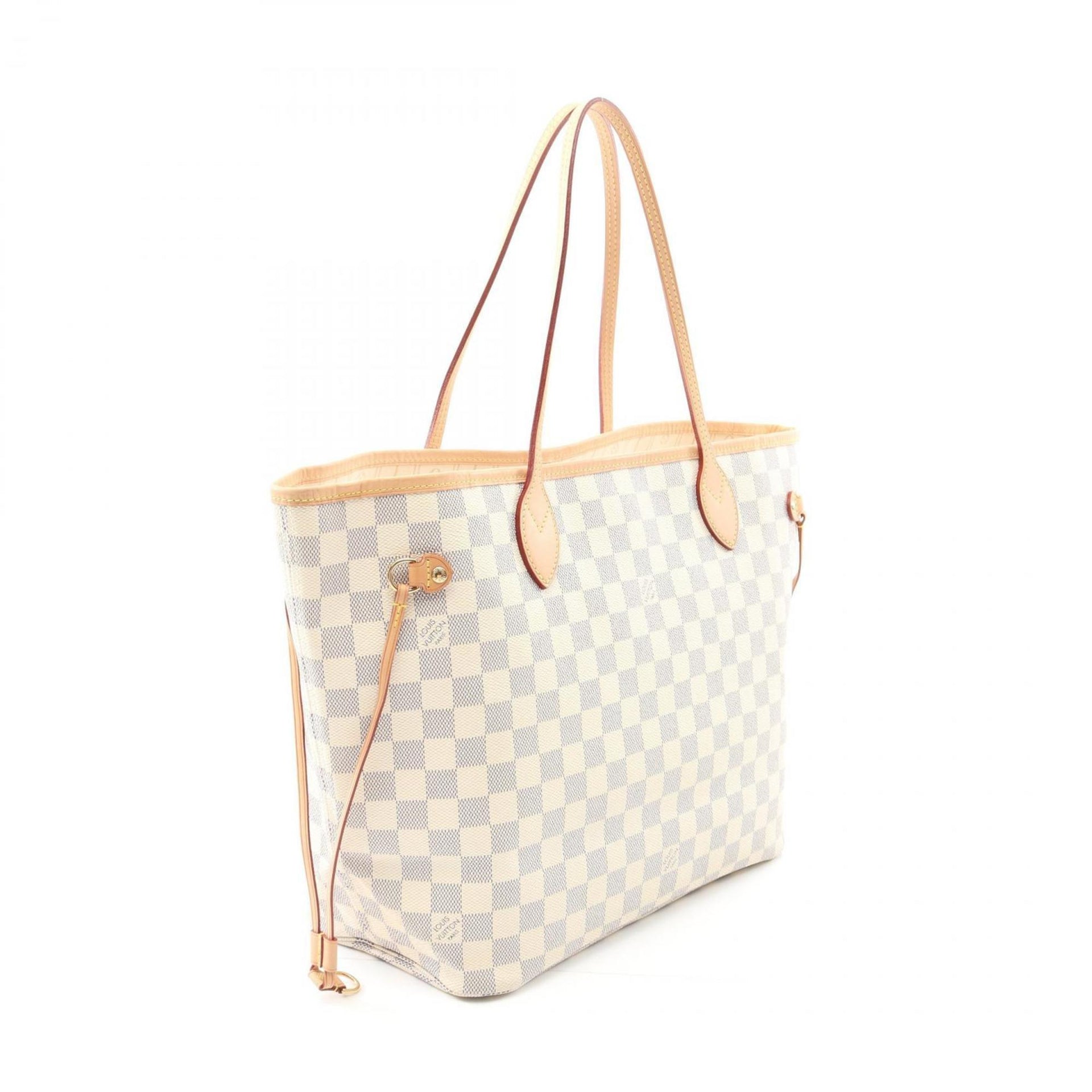 Louis Vuitton Neverfull MM Tote Bag, Coated Canvas and Leather with Damier Azur Pattern, Women\'s, White, N51107