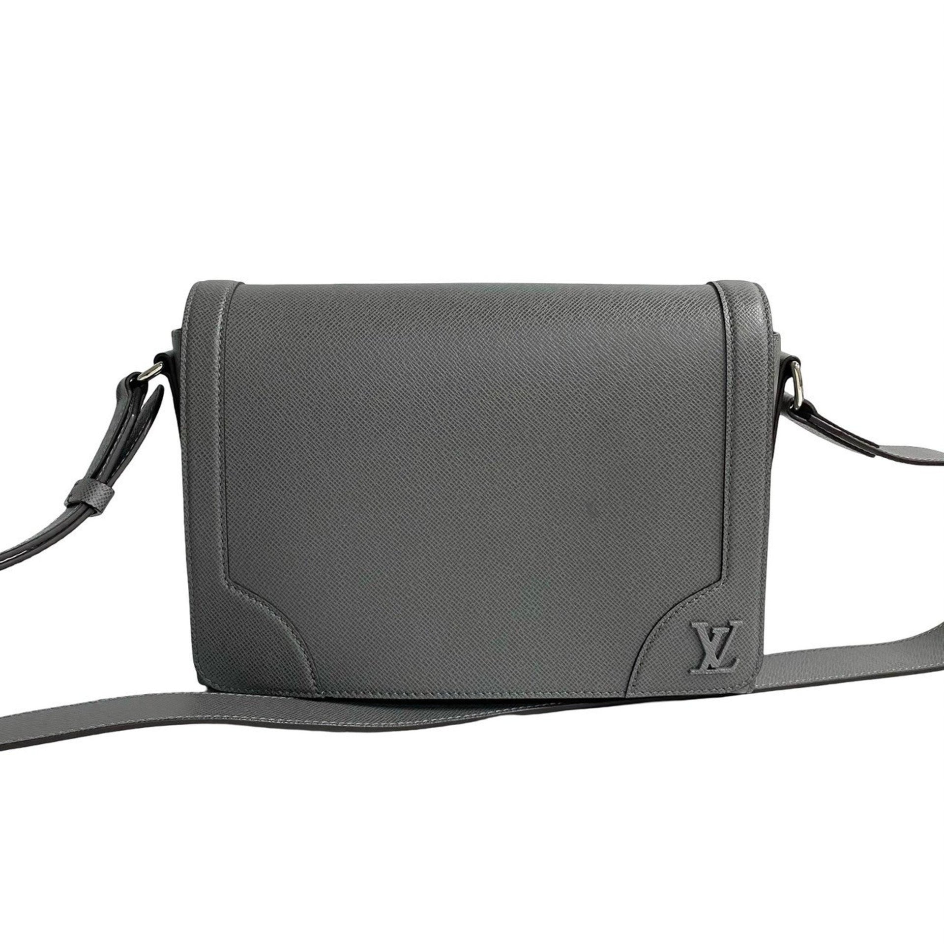 LOUIS VUITTON New Flap Messenger Taiga Leather Shoulder Bag, Gray, 08719