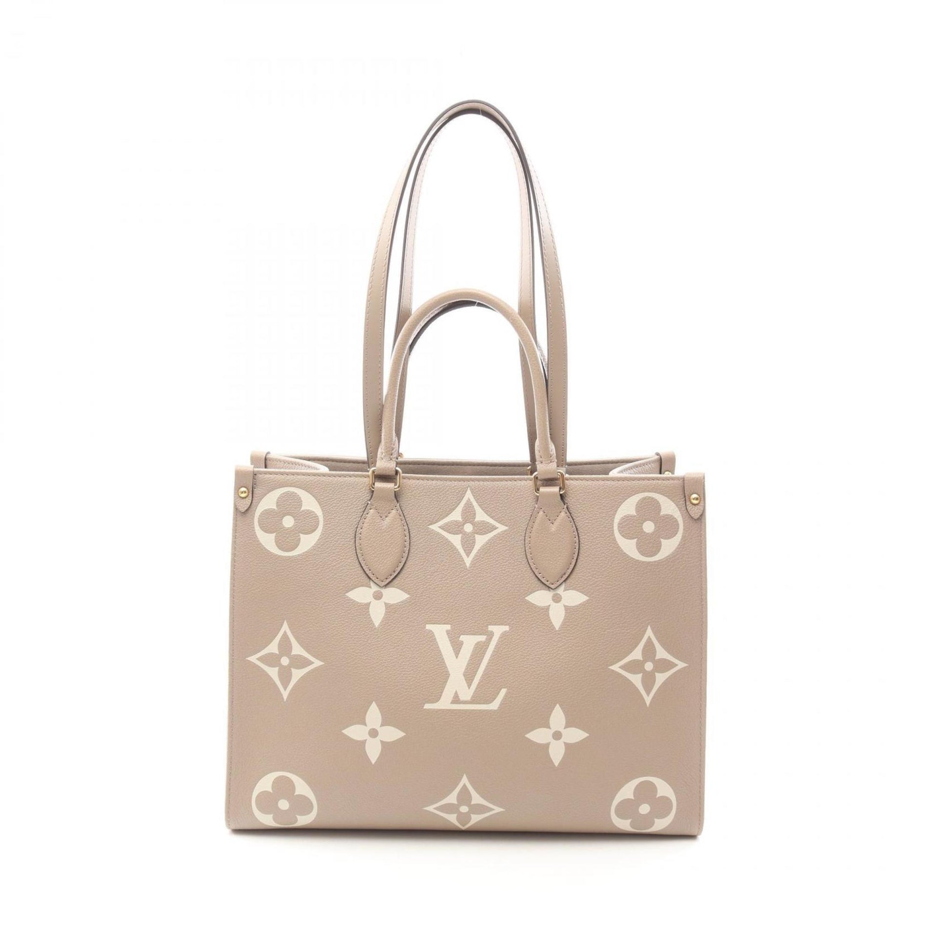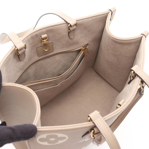 LOUIS VUITTON On the Go MM Bicolor Monogram Empreinte Tourterelle Crème Tote Bag Leather Women\'s Beige Ivory M45494