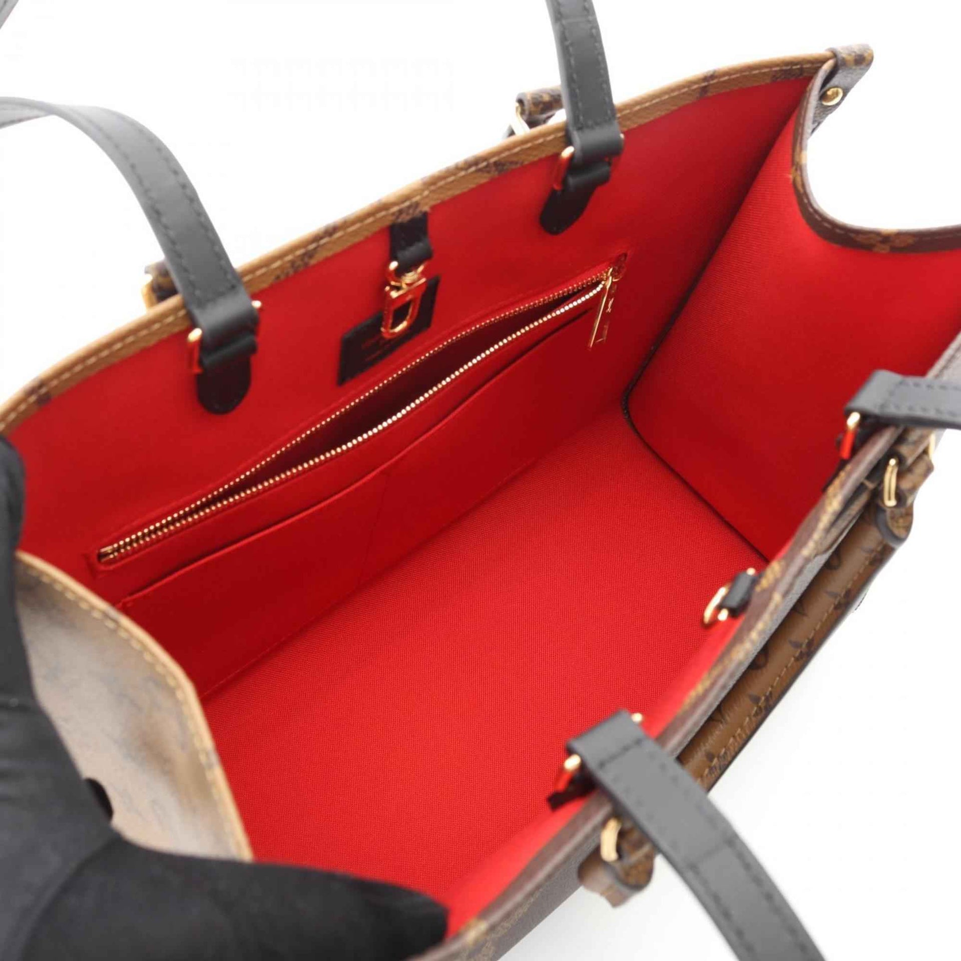 Louis Vuitton On the Go MM Tote Bag in Coated Canvas and Leather with Monogram Giant Reverse Pattern, Women\'s, Brown Beige, M45321