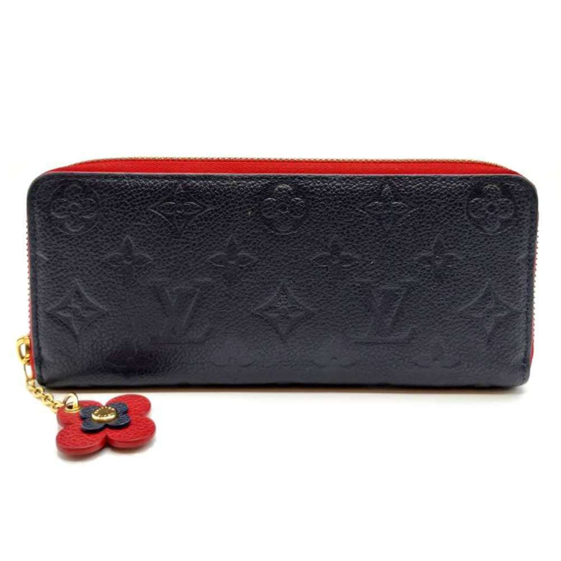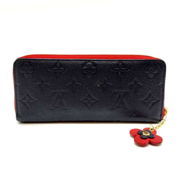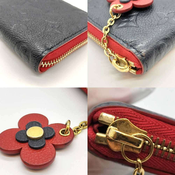 Louis Vuitton Portefeuille Clemence Round Long Wallet in Marine Rouge Navy and Red with Monogram Empreinte Flower Charm, M68325
