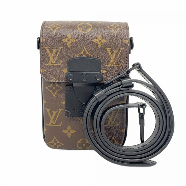 Louis Vuitton Shoulder Bag Monogram Macassar S-Lock Vertical Wearable Wallet M81522 Brown Black Men's