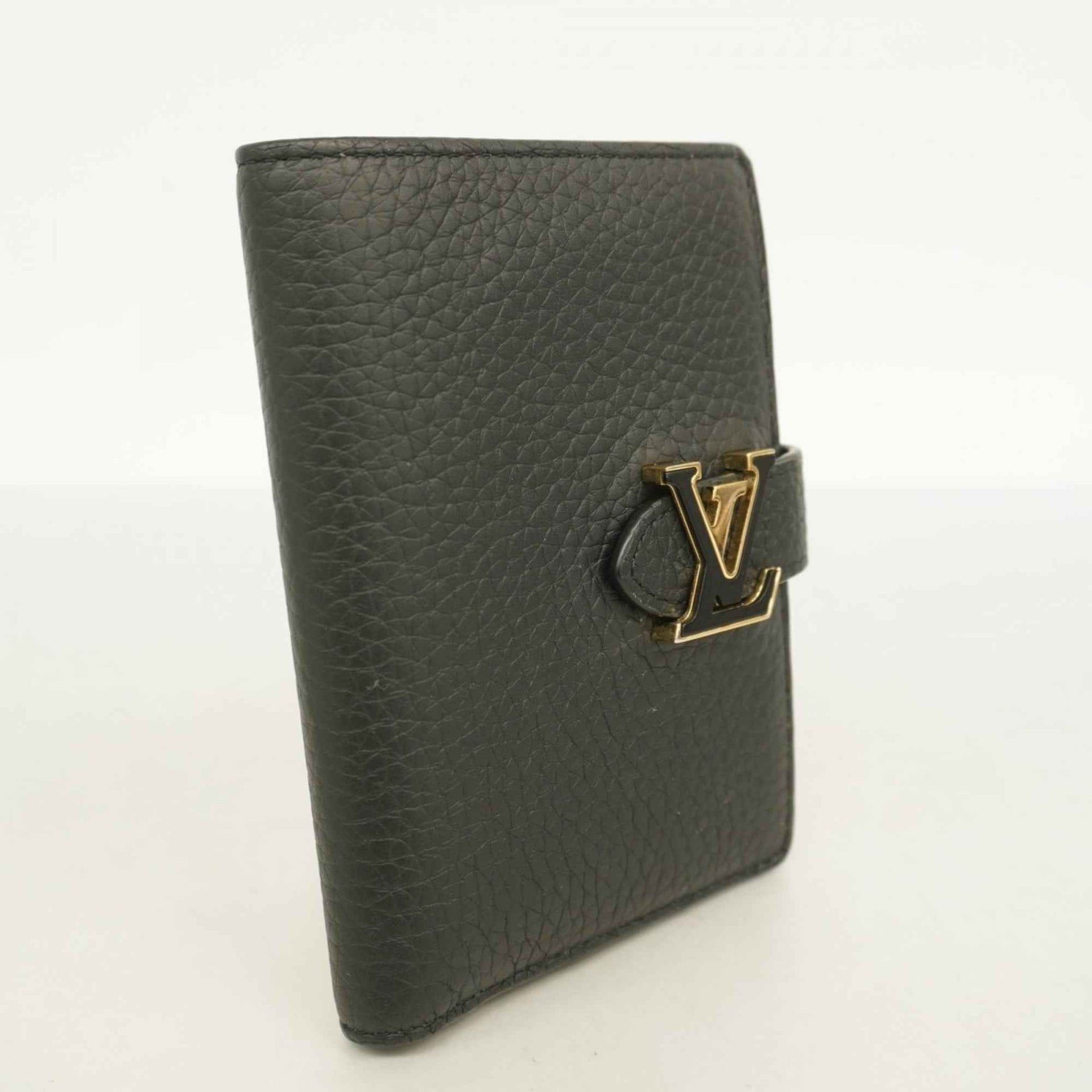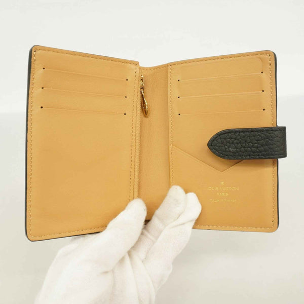 Louis Vuitton Taurillon LV Vertical Wallet Compact M81561 Noir Women\'s