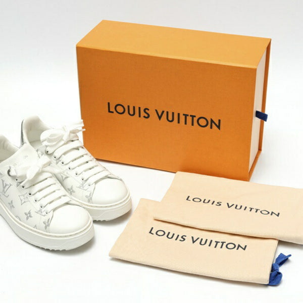 Louis Vuitton Time Out Line Sneakers 1A8TAW Smooth Leather White Silver # 37 B-159036
