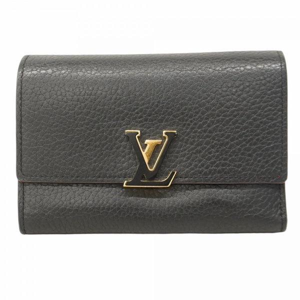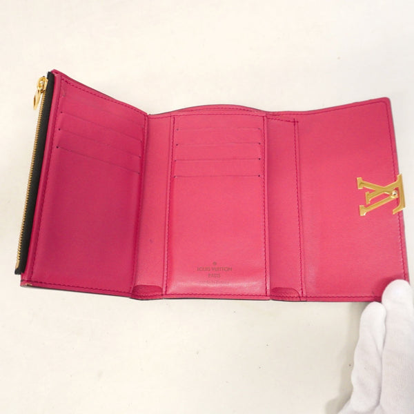 Louis Vuitton Tri-fold Wallet Taurillon Portefeuille Capucines Compact M62157 Noir Hot Pink Women's