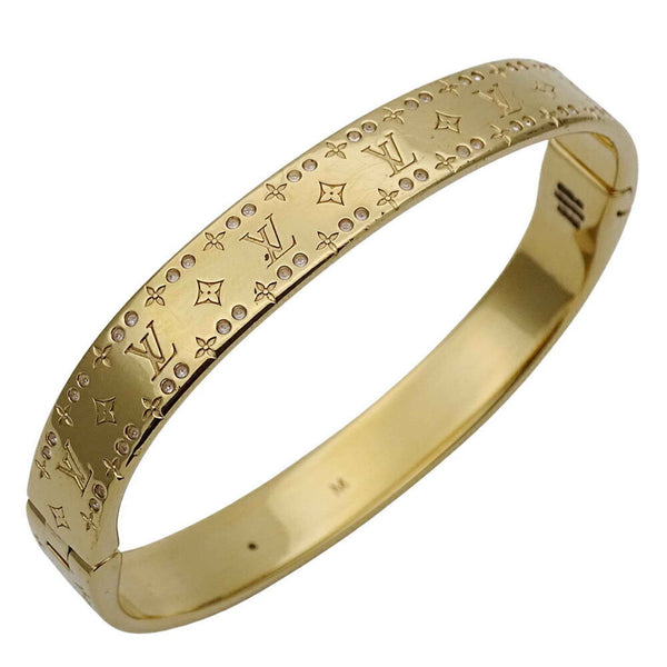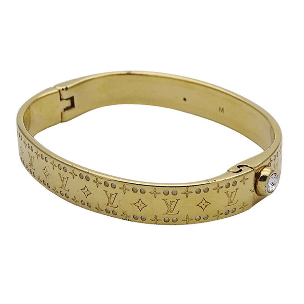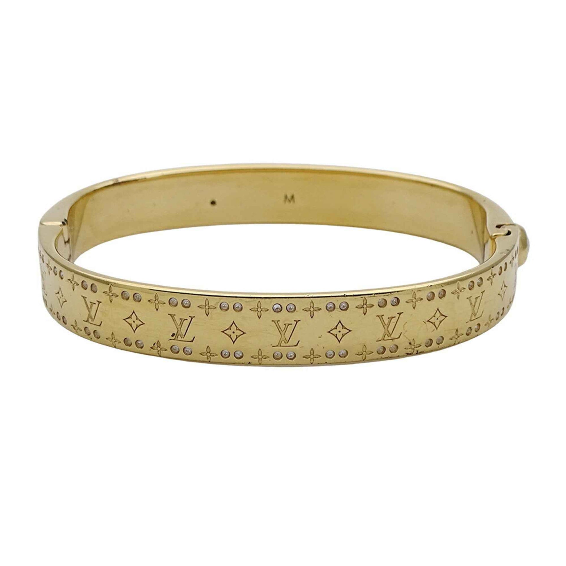 Louis Vuitton Women\'s Bracelet, Metal and Stone Rigid Nanogram Strass, Gold, M64861, Size M