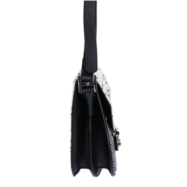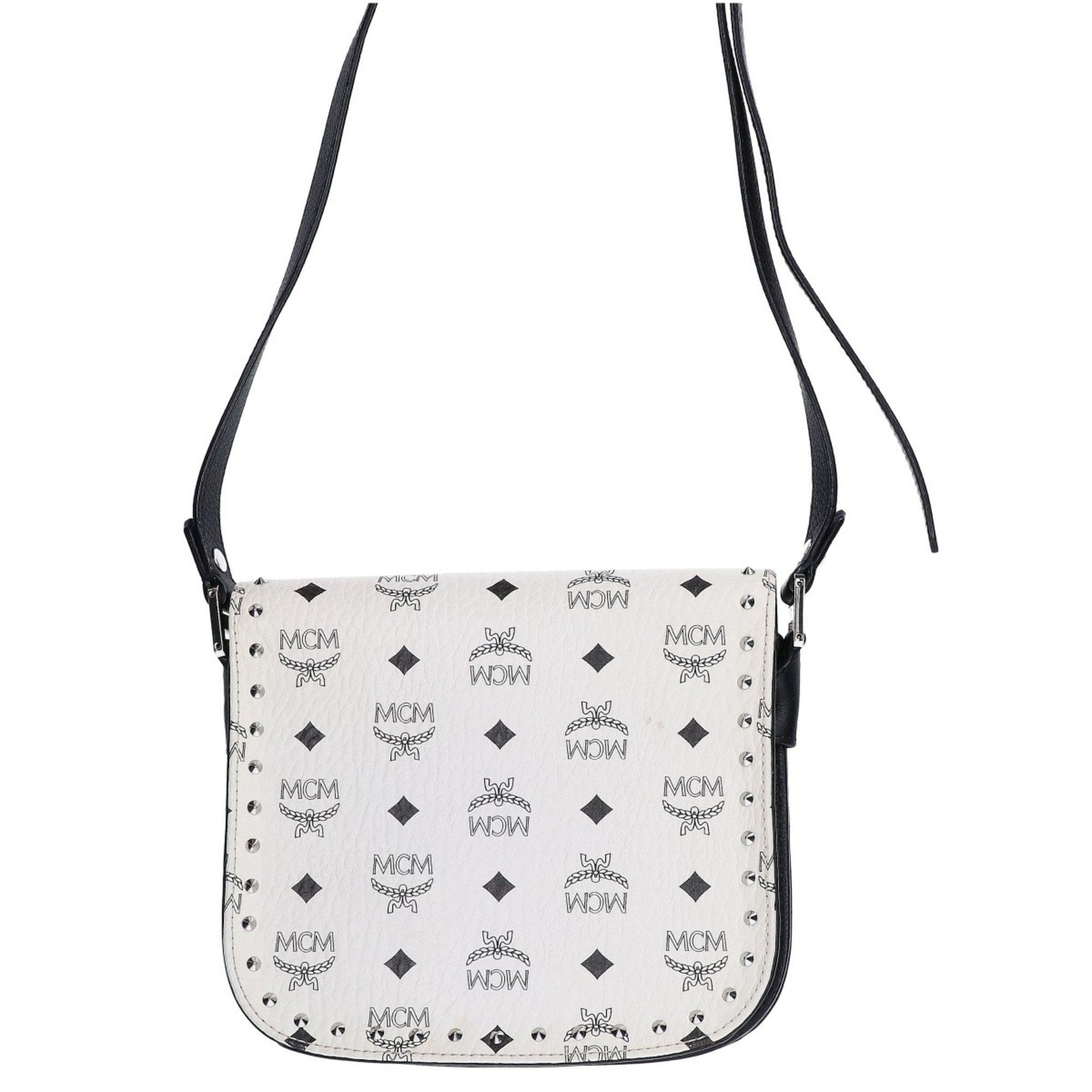MCM MADE TO ORDER 2017 Visetos Studded Flap Shoulder Bag in Black and White for Women