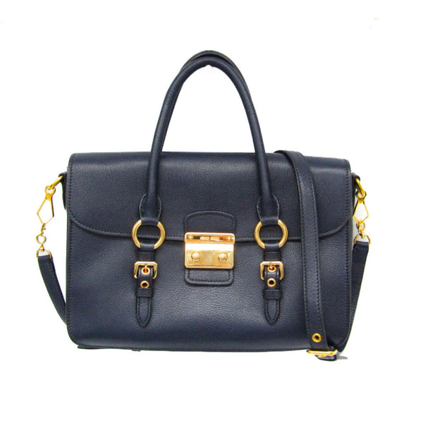 Miu Miu MADRAS Women\'s Leather Handbag,Shoulder Bag Navy