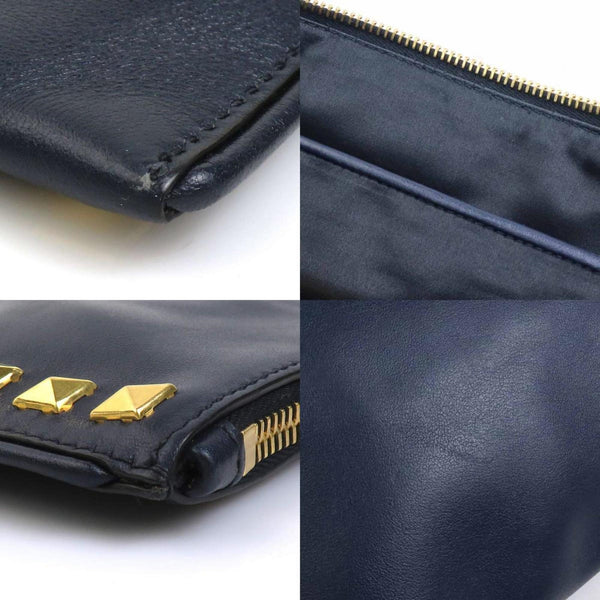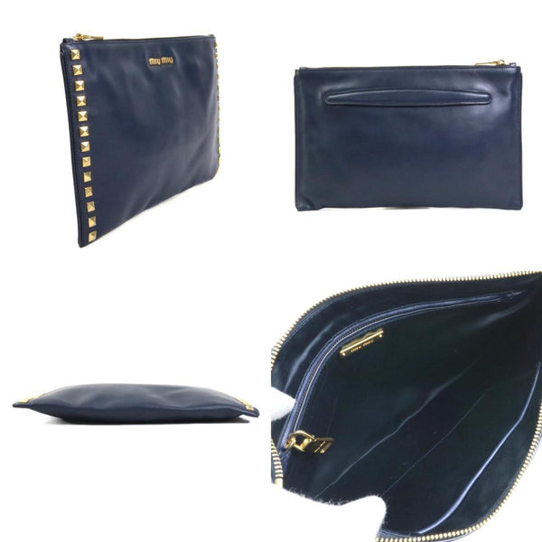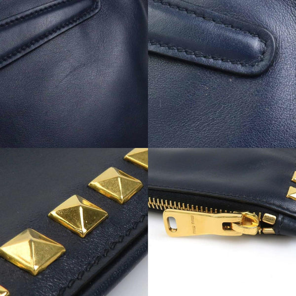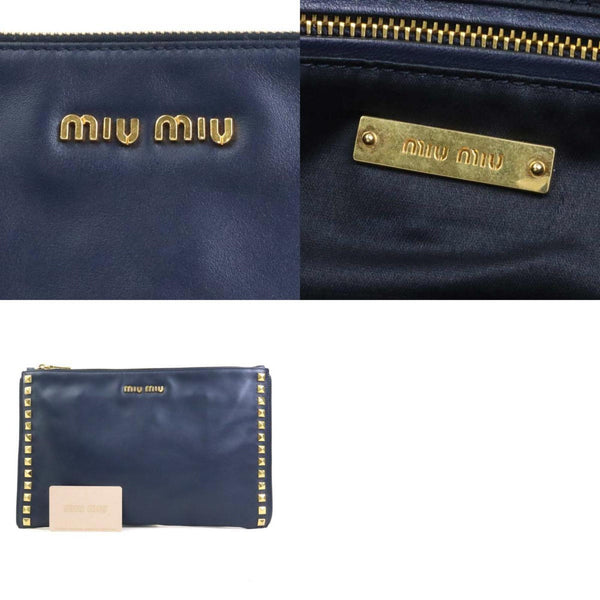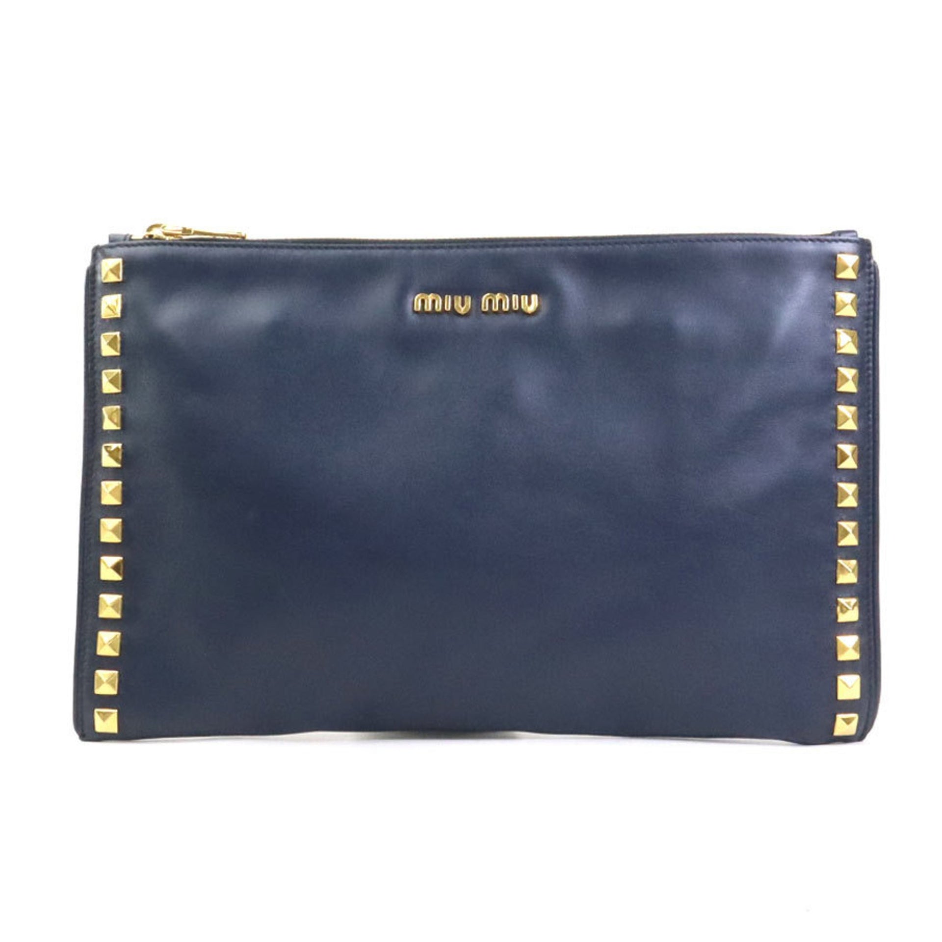 Miu Miu Miu Clutch Bag Leather Metal Navy Gold Women\'s e60494k