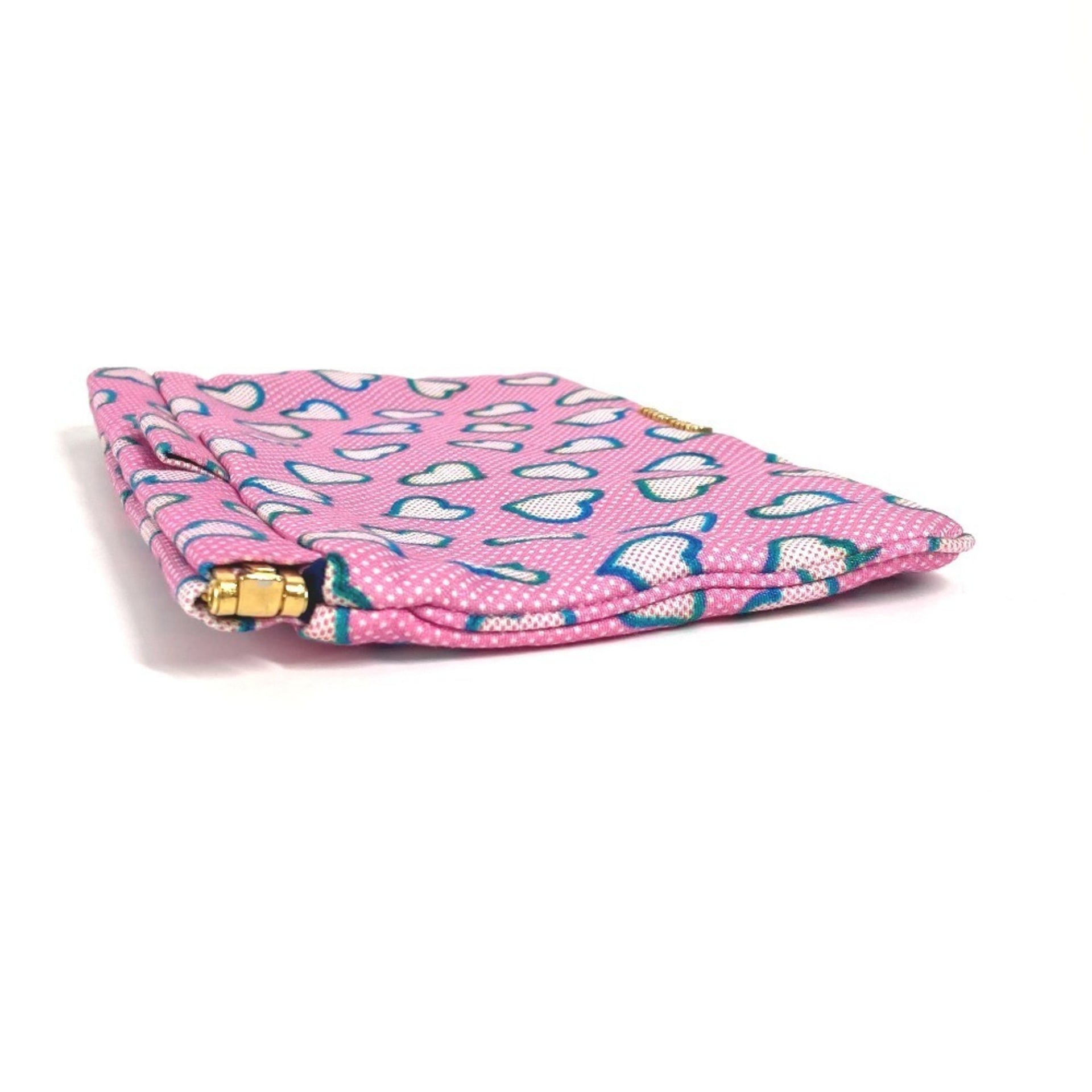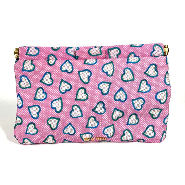 Miu Miu miu heart logo bag pouch clutch nylon leather ladies pink