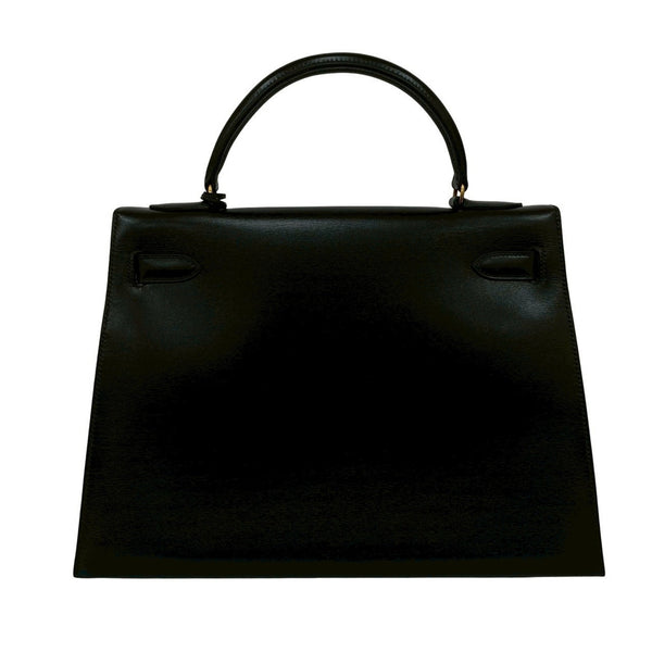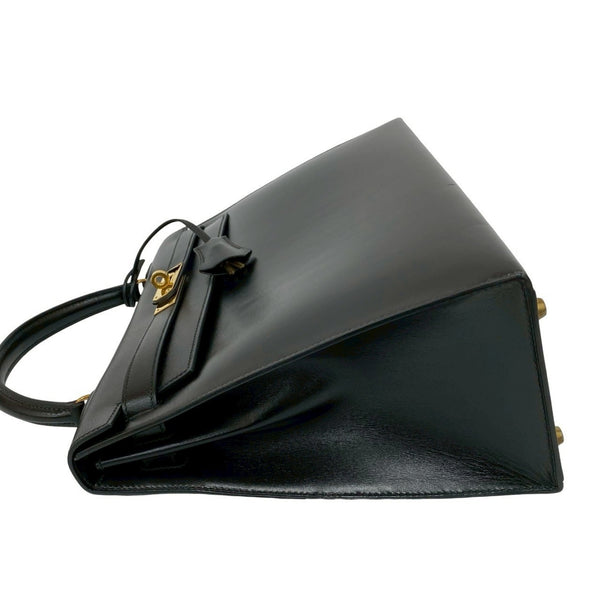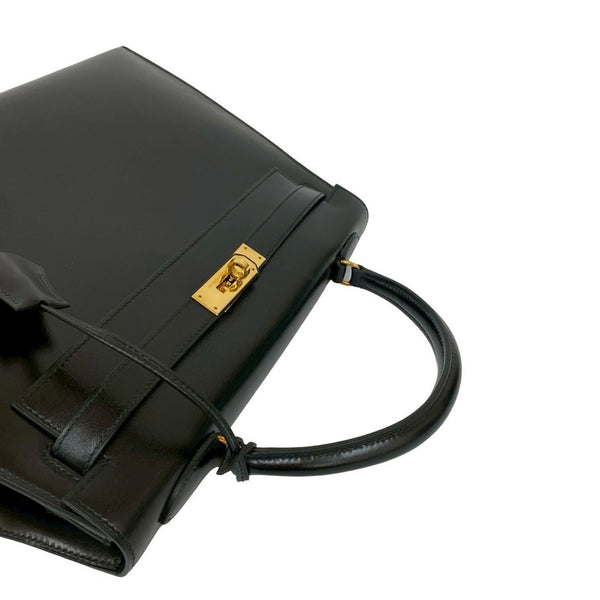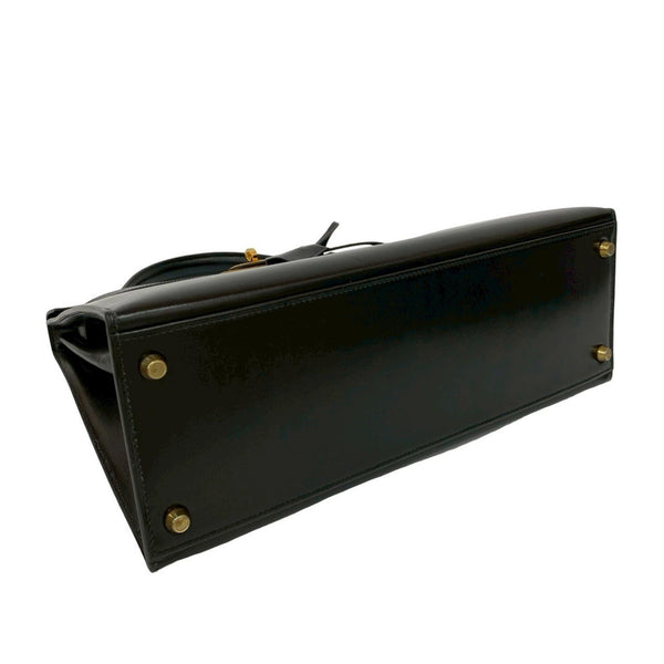 Nearly unused, T-stamped HERMES Kelly 32 box calf leather 2-way handbag/shoulder bag, black, 95967