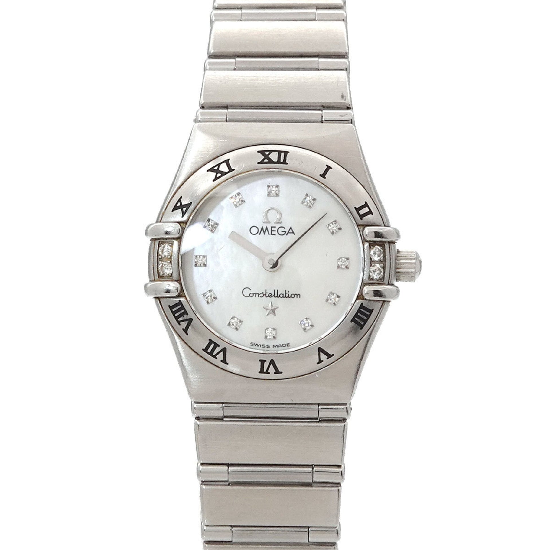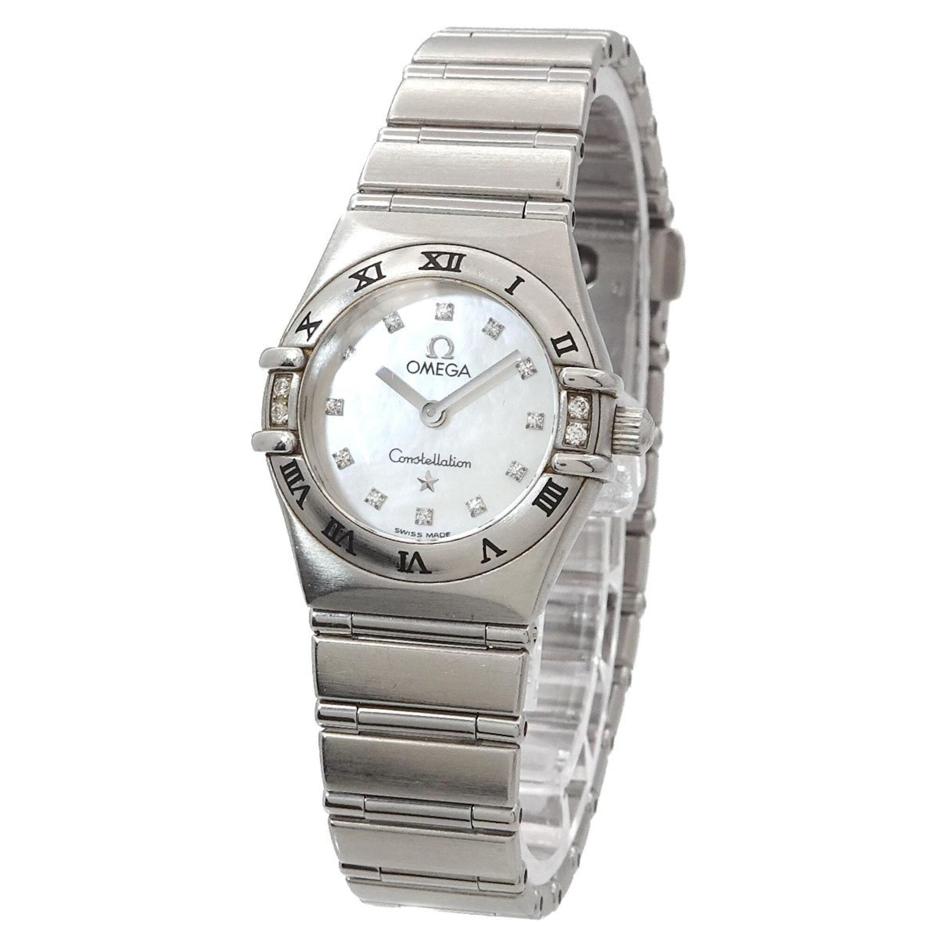 Omega Constellation Mini My Choice 1566 76 4P Diamond Bezel Ladies Watch 12P White Shell Quartz
