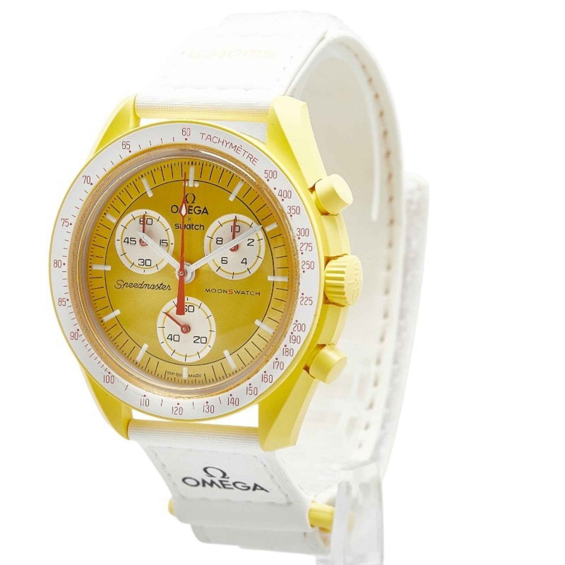 OMEGA x Swatch Moon Mission to the Sun Watch SO33J100 Quartz Yellow Dial Ceramic Nylon Men\'s