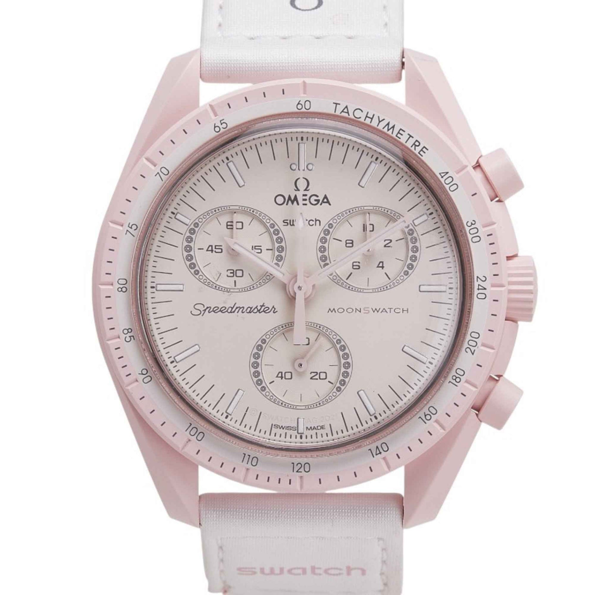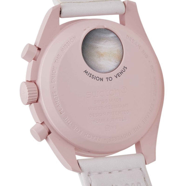 OMEGA x Swatch Speedmaster Moon Mission to Venus Watch SO33P100 Quartz Beige Dial Ceramic Nylon Men\'s