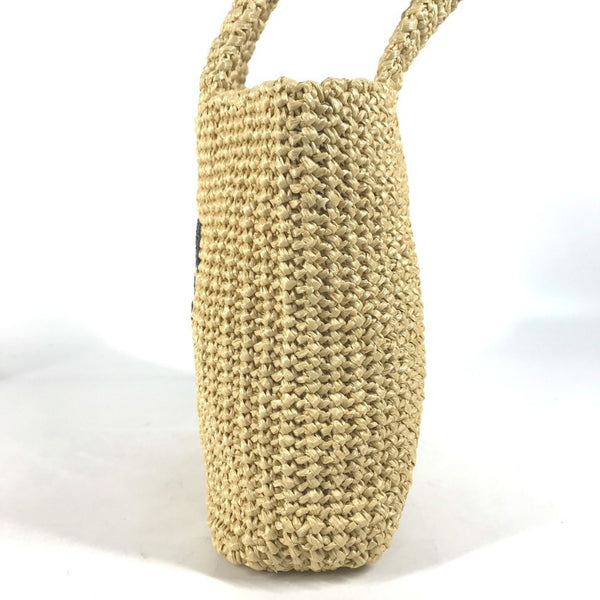 PRADA 1BG422 Basket Bag, Straw Crochet Triangle Logo, Small Lettering Tote Handbag, Raffia, Women\'s, Natural Beige