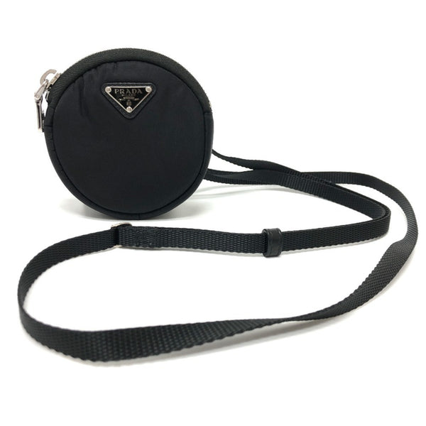 PRADA 1TT129 Triangle Logo Neck Pouch/Shoulder Bag in Nylon/Leather, Unisex, Black