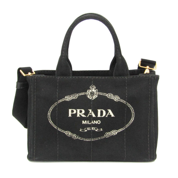 Prada Canapa S Size 1BG439 Women\'s Canvas Shoulder Bag,Tote Bag Black