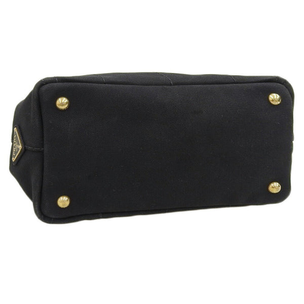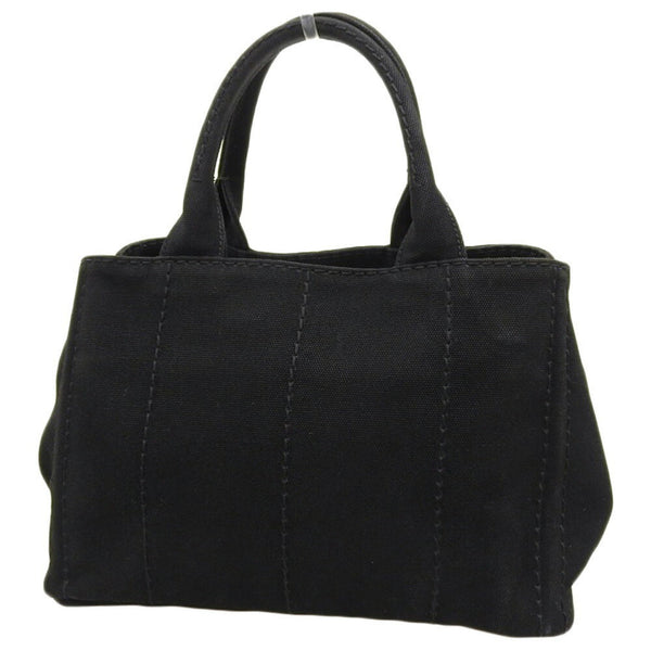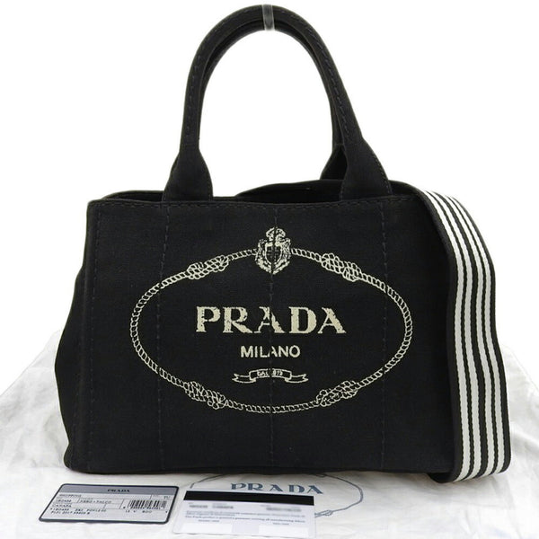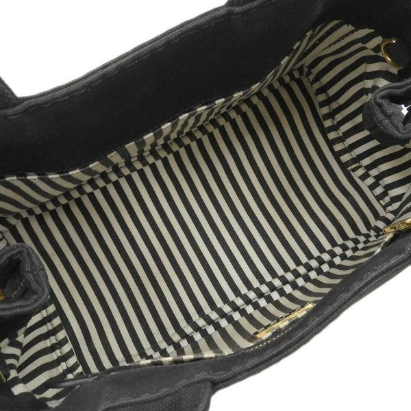 PRADA Canapa Tote 1BG439 Bag Handbag Canvas Black Medium Stripe