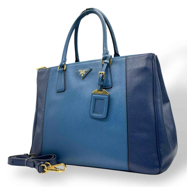 Prada Galleria handbag, tote bag, 2-way shoulder Saffiano leather, triangle logo, blue, gold hardware, men\'s and women\'s, size A