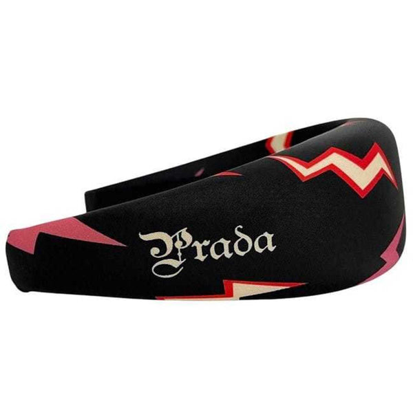 Prada Headband ec-23977 Black, Universal Studios Collaboration Nylon Hairband for Women, Frankenstein Thunder Design
