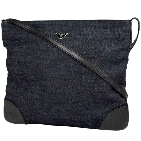 Prada logo plate shoulder bag, crossbody canvas, navy and black, women\'s