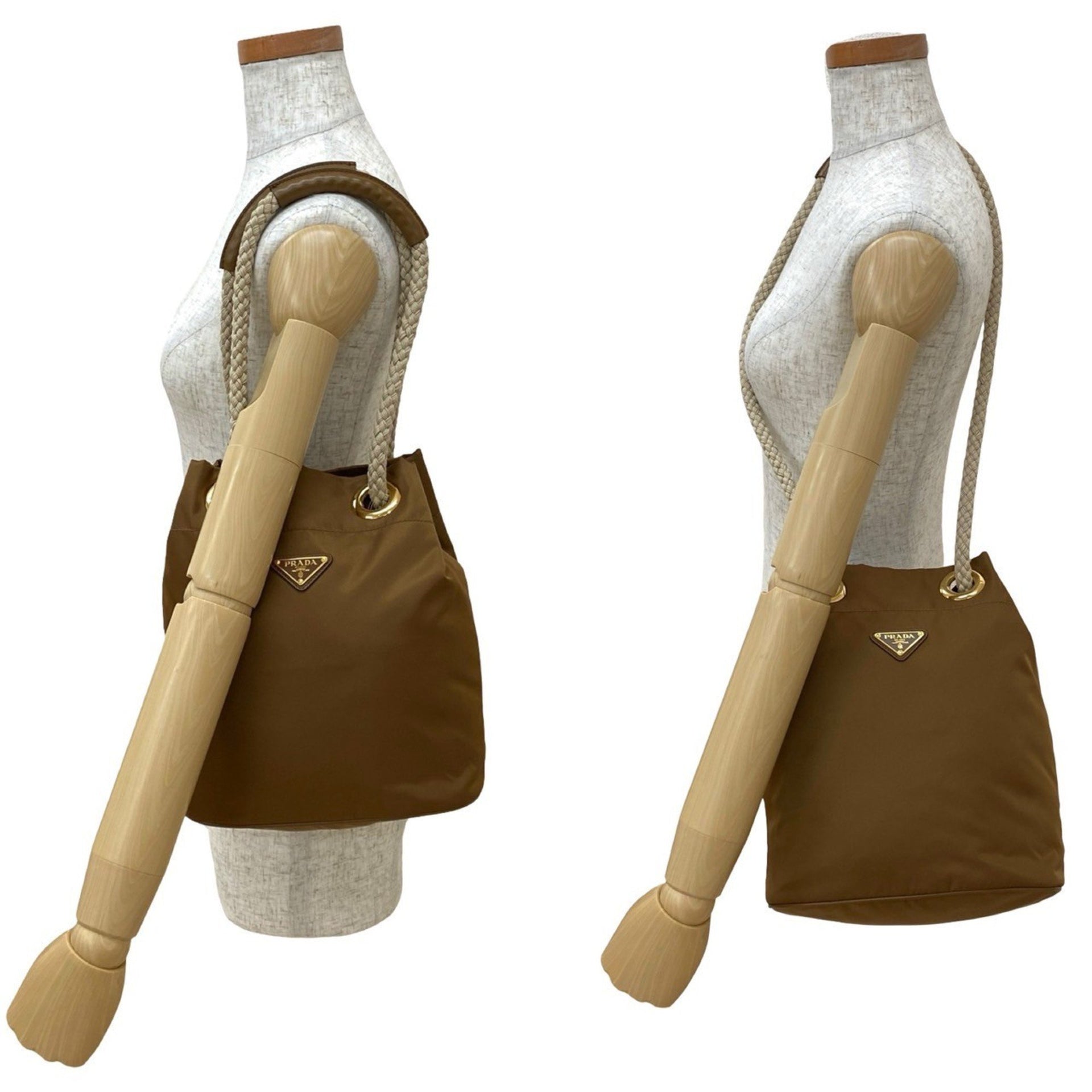 PRADA Marina Small Re-Nylon Shoulder Bag with Triangle Logo and Metal Hardware, Brown, s327a