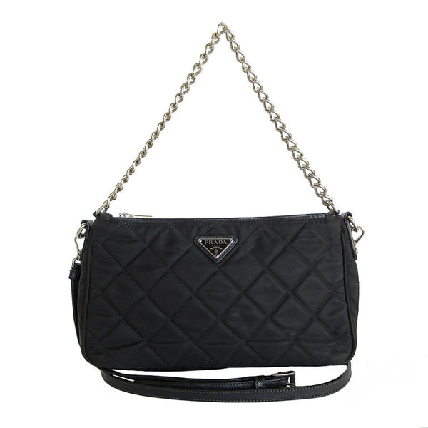 Prada PRADA handbag shoulder bag nylon leather black silver women\'s s0679k