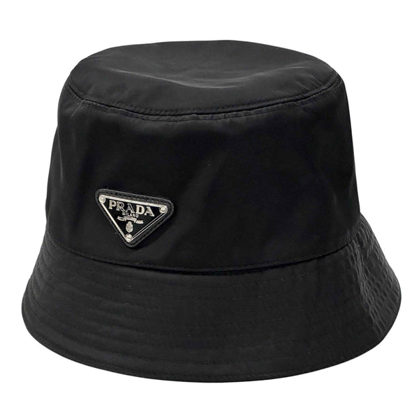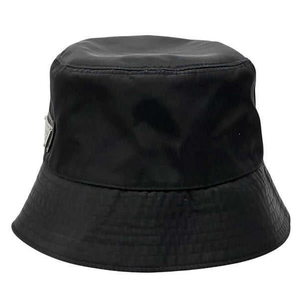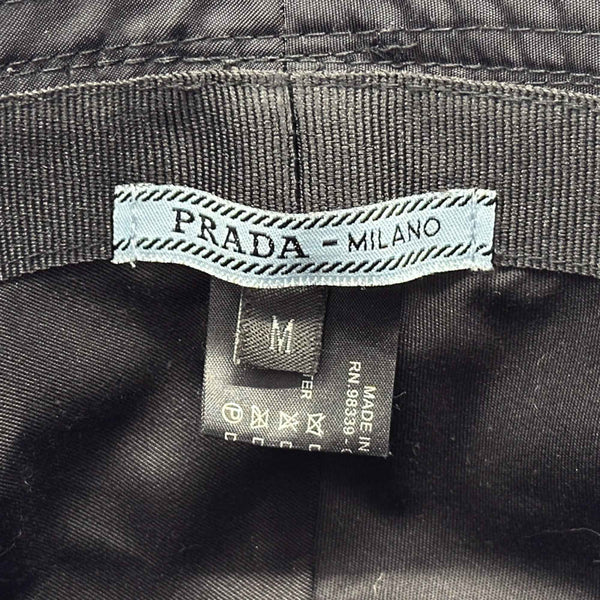 Prada PRADA Hat Women\'s Men\'s Brand Nylon Bucket Black M Tessuto Triangle Logo Plain Simple