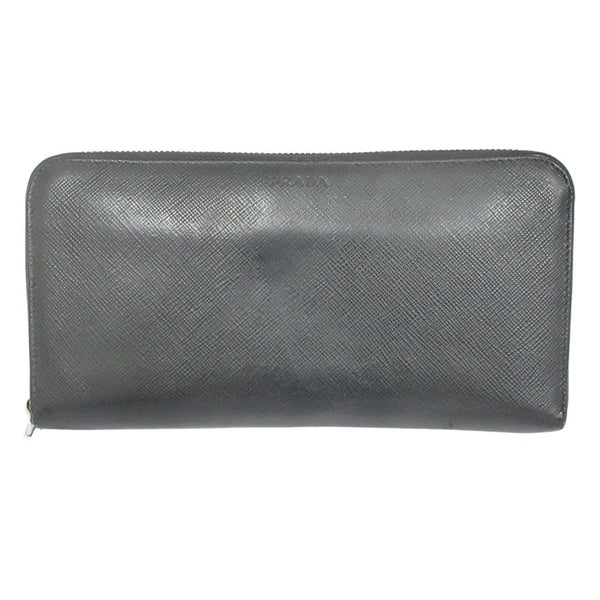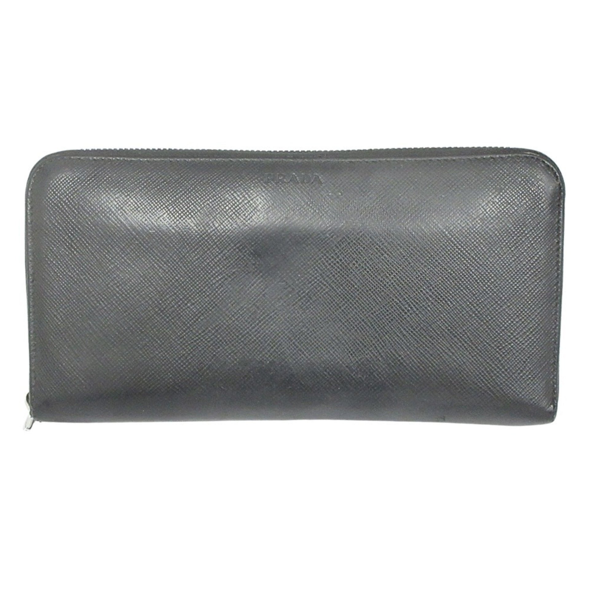 PRADA Prada long wallet, round zipper, Saffiano leather, black, logo, men\'s