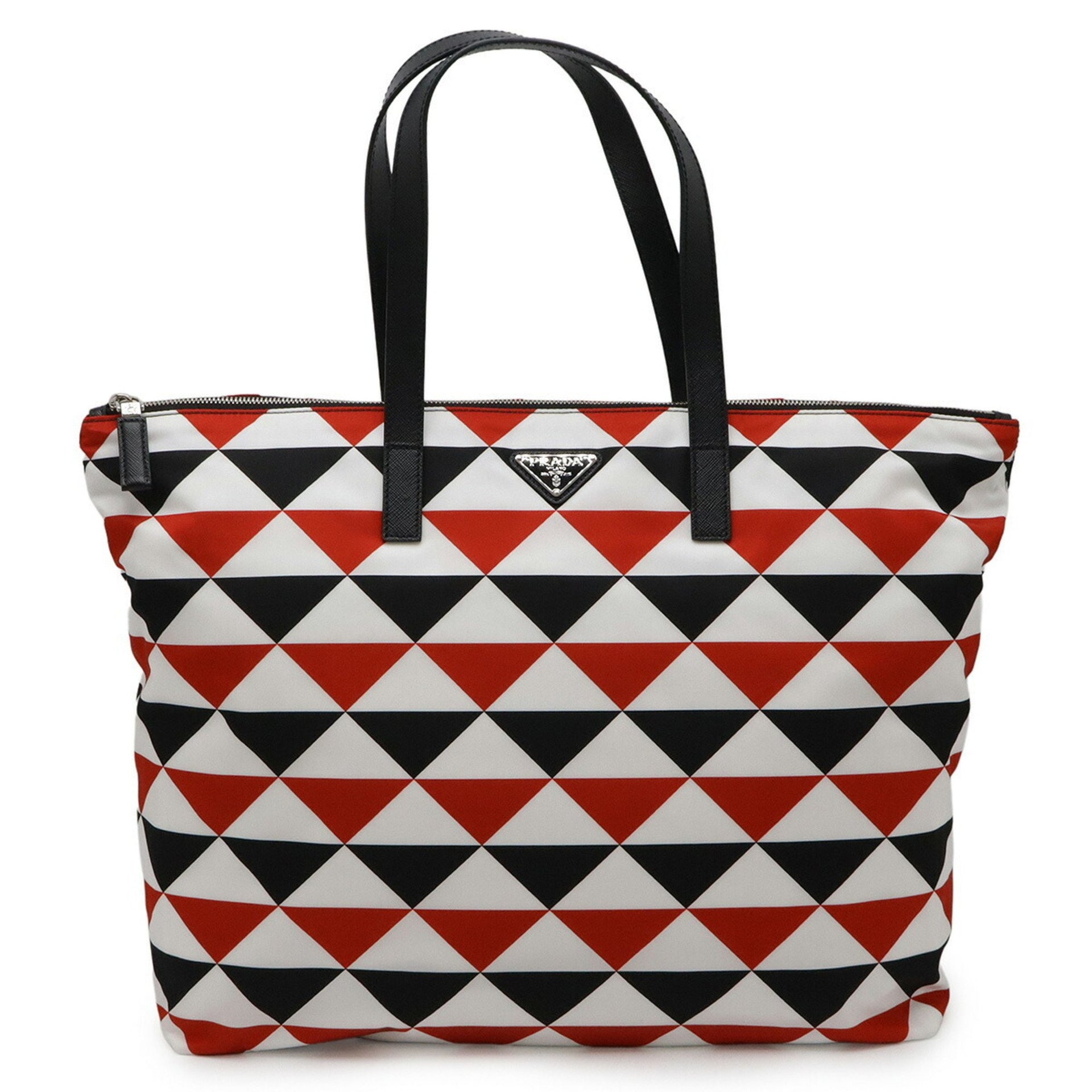 PRADA Prada on Ice Triangle Tote Bag Shoulder Nylon White Black Red Limited Edition
