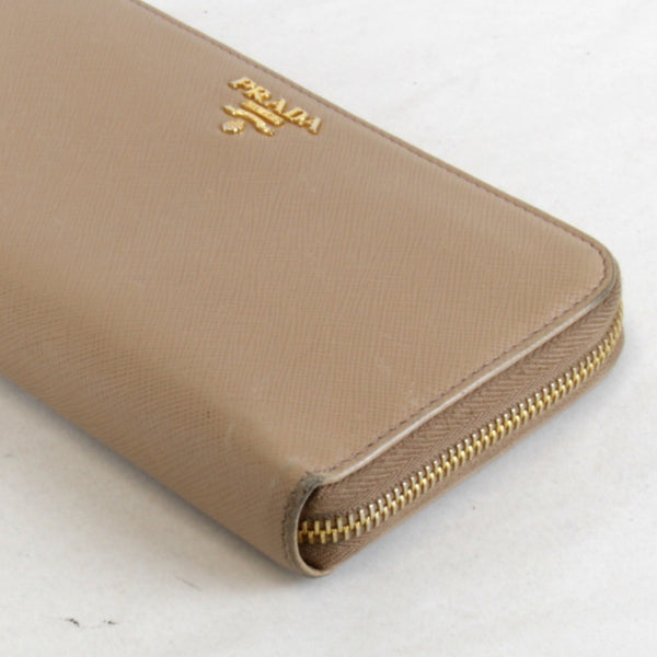 PRADA Prada Saffiano Round Zip Wallet 1ML506 Long Leather Brown Women\'s
