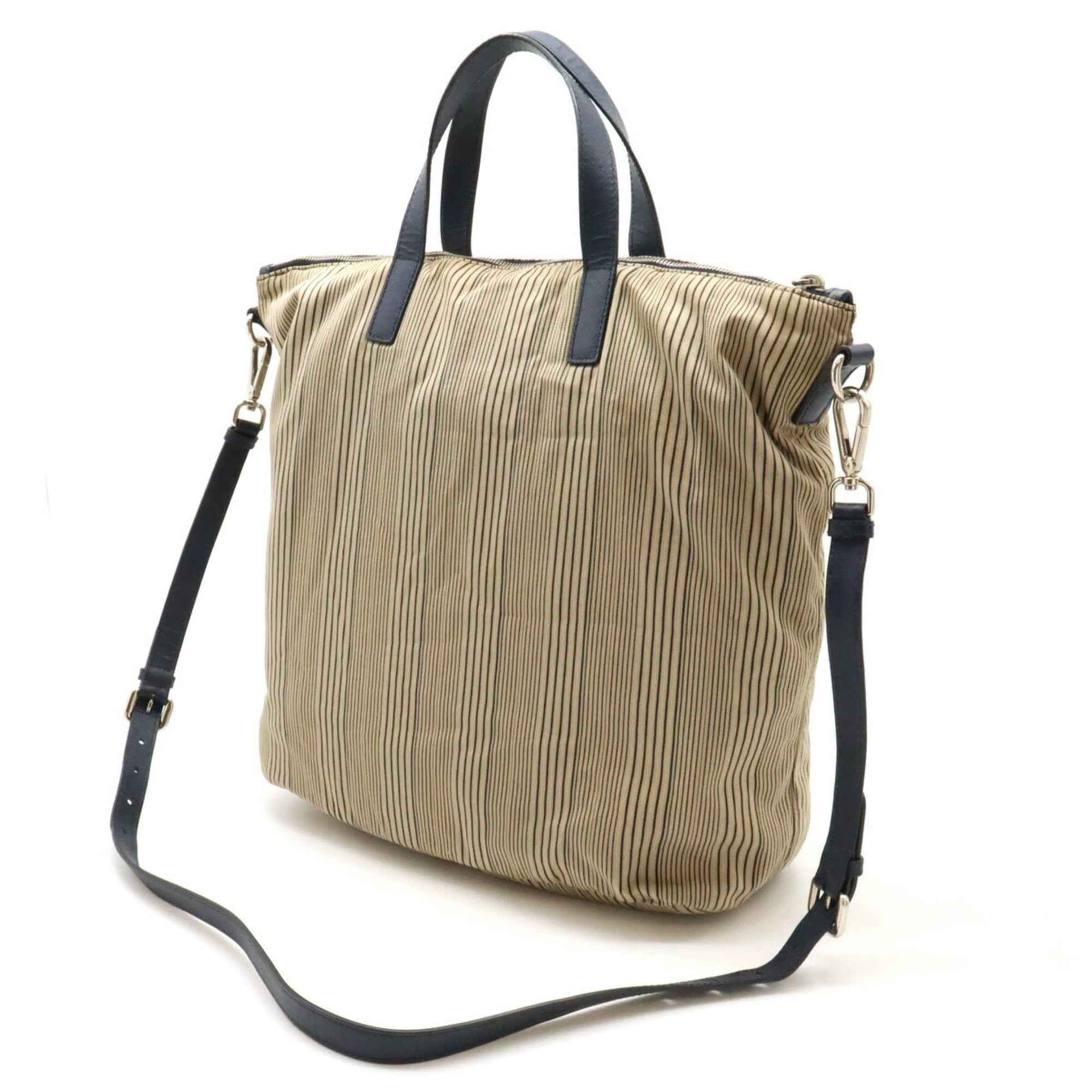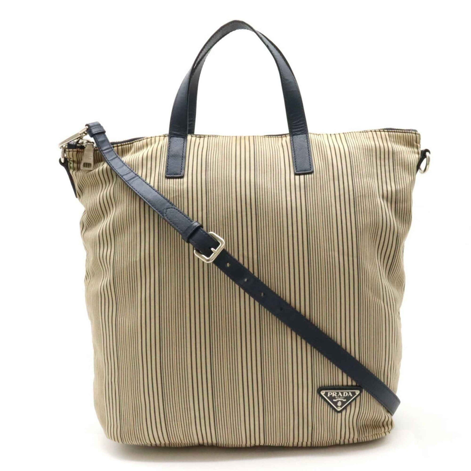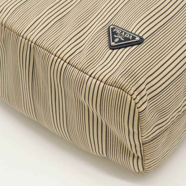 PRADA Prada Tote Bag Handbag Shoulder Stripe Canvas Leather Beige Purchased at a Domestic Outlet B2052G