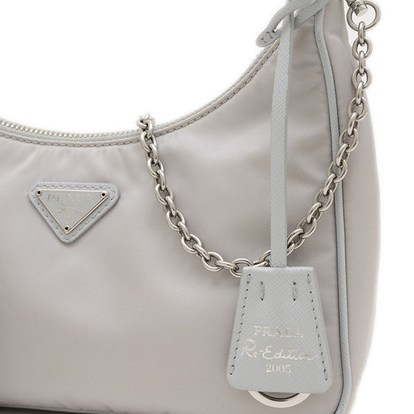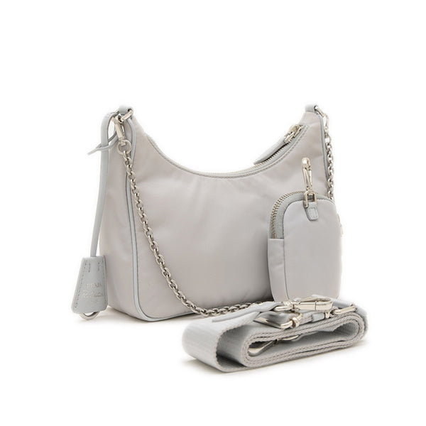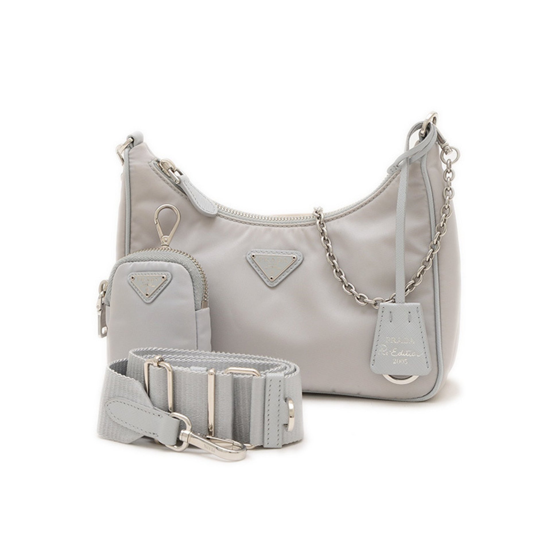 Prada Re-Edition Shoulder Bag Nylon Grey with Pouch 1BH204 BP