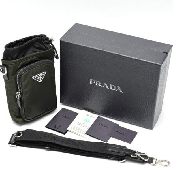 PRADA Re-Nylon Smartphone Case Shoulder Pouch 2ZH155 Nylon Leather Khaki S-158955