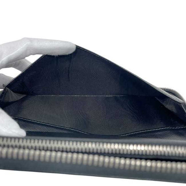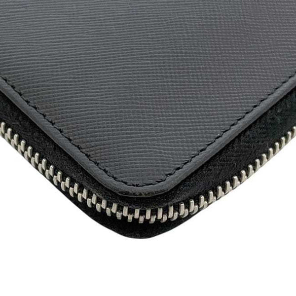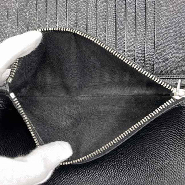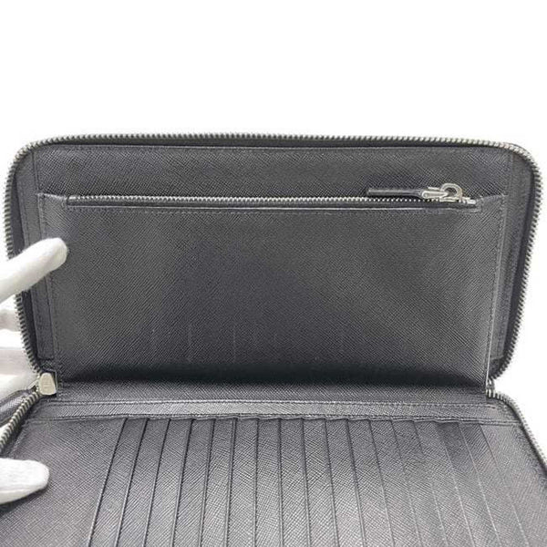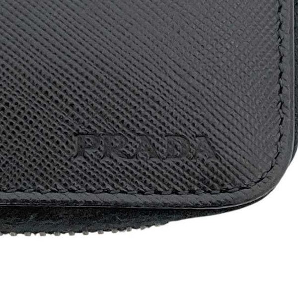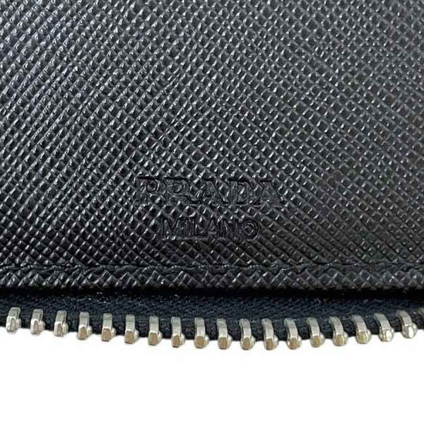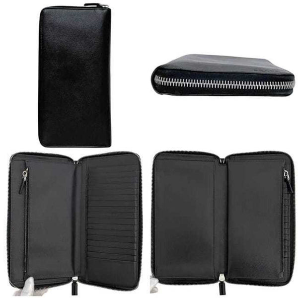 Prada Round Long Wallet f-24001 Black NERO 2ML220 Organizer Saffiano Leather PRADA Engraving Men\'s Women\'s