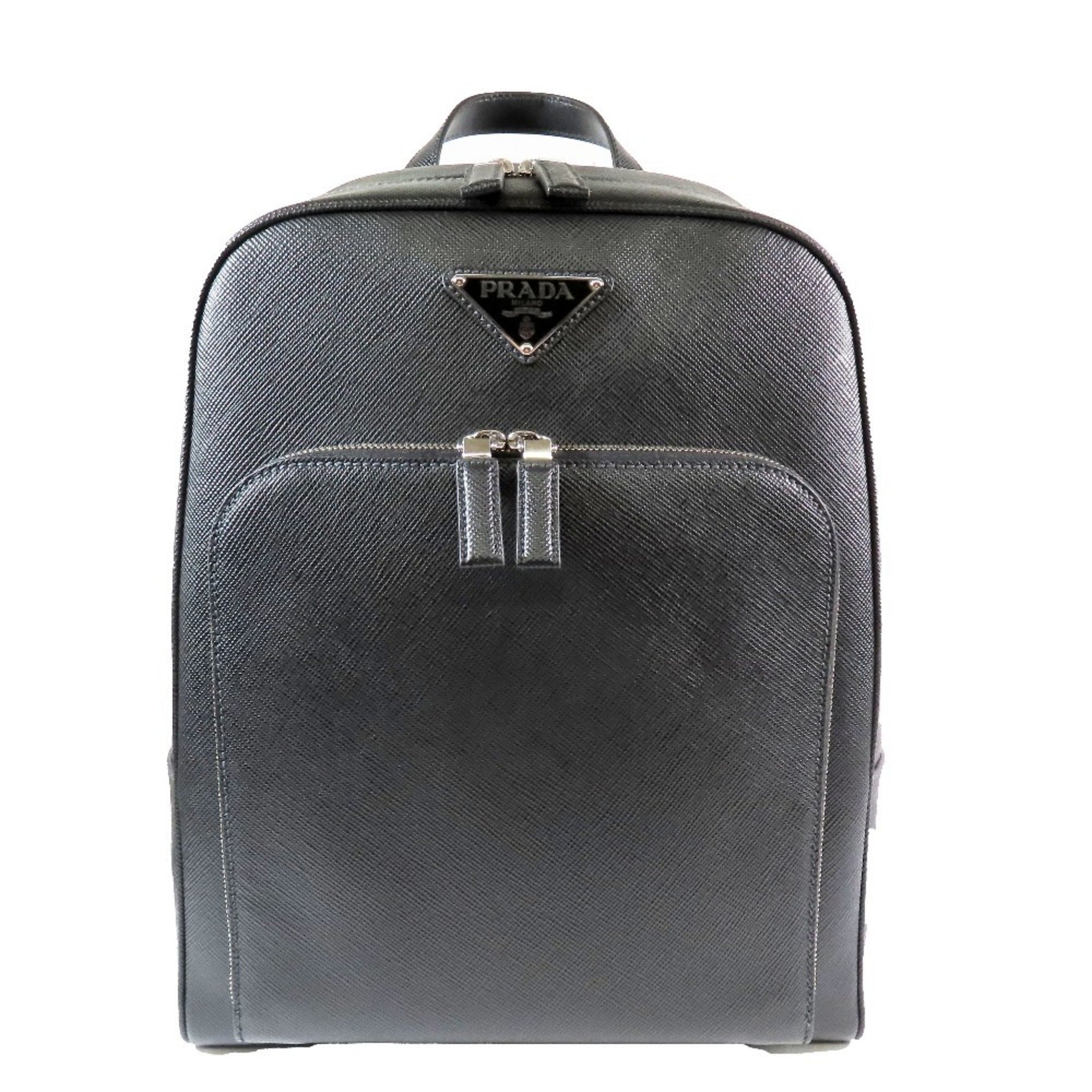 PRADA Saffiano Leather Backpack with Triangle Logo, 2VZ102, Black, Men\'s