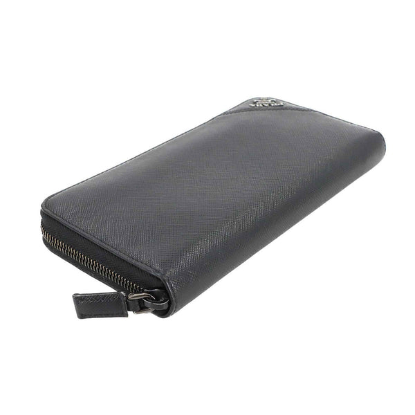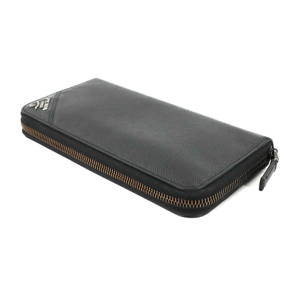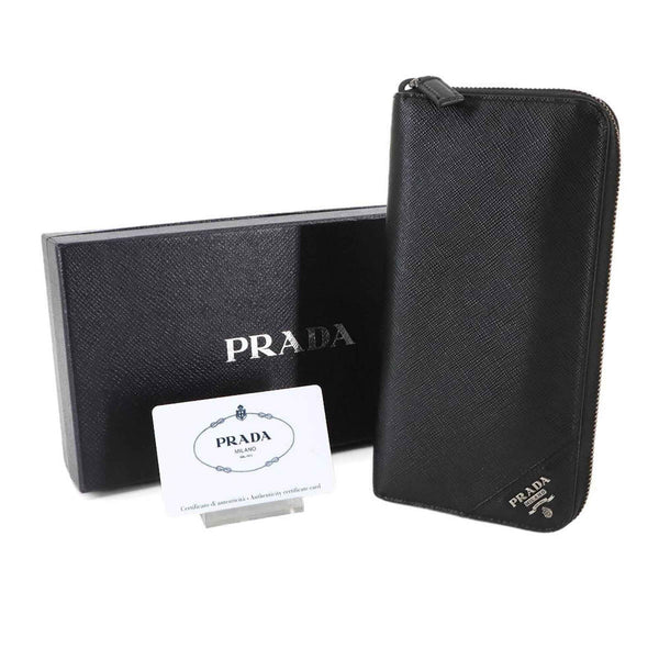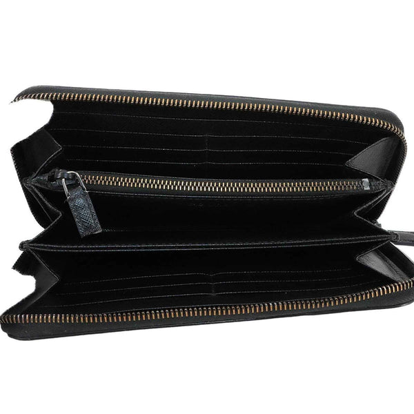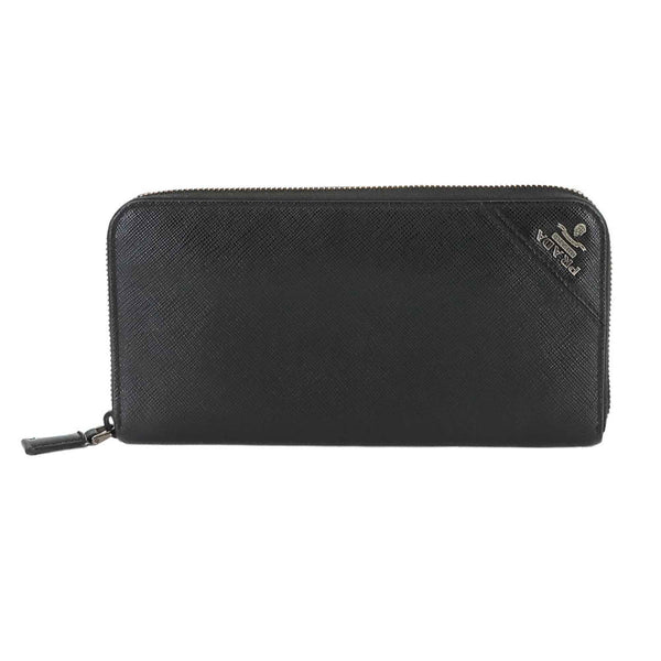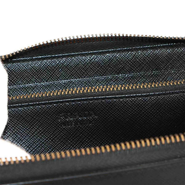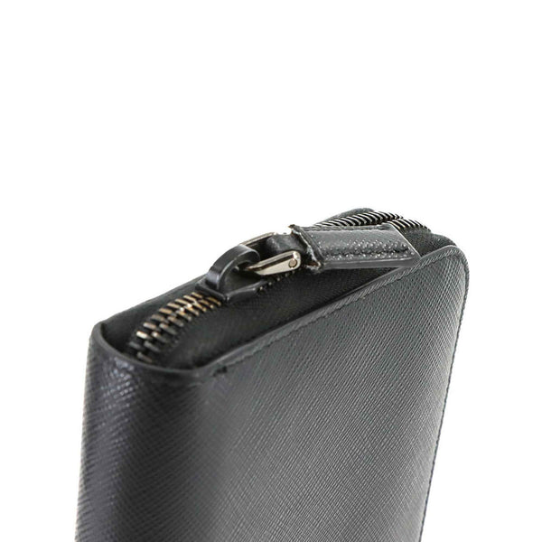 Prada Saffiano Round Long Wallet in Nero Leather with Silver Hardware, 2ML317