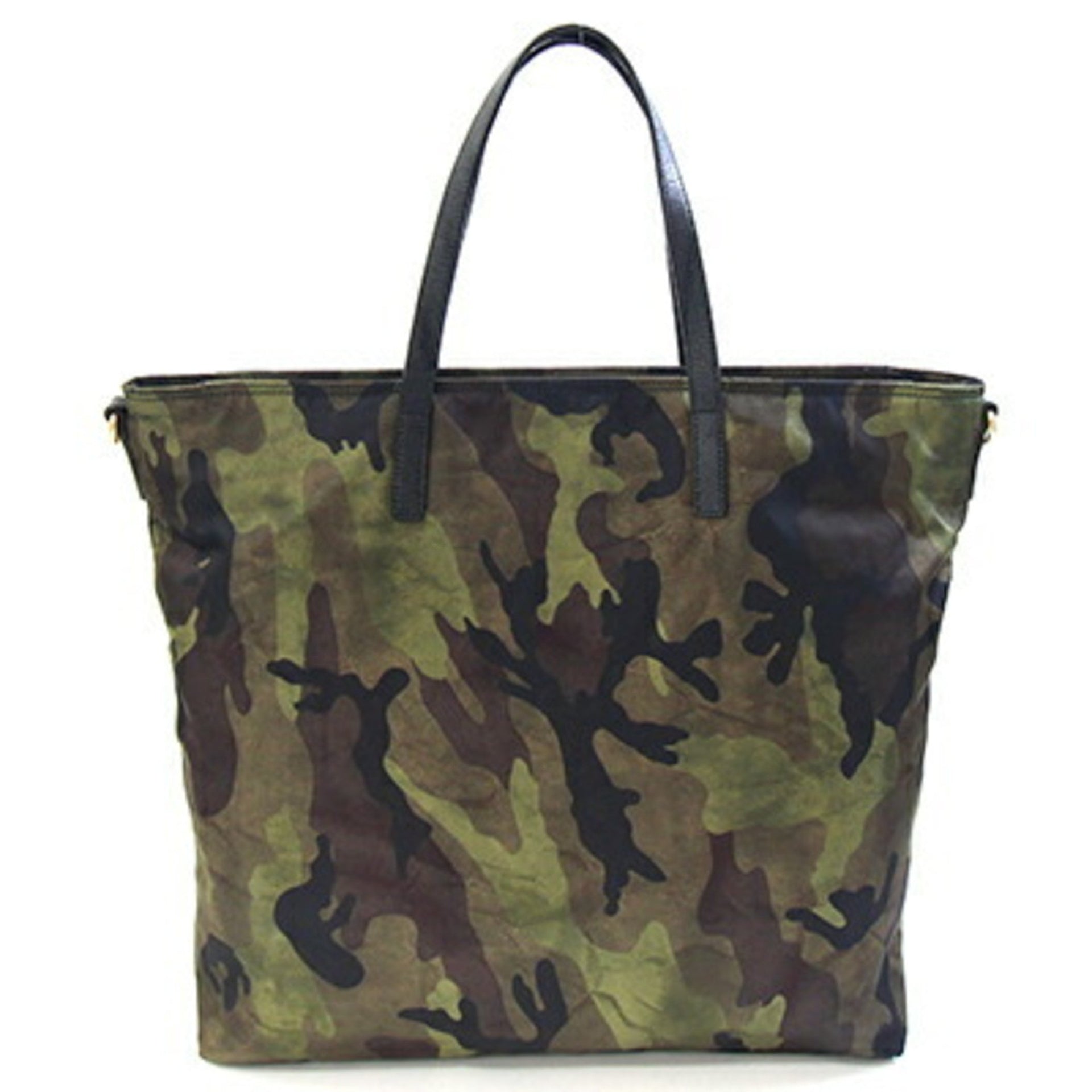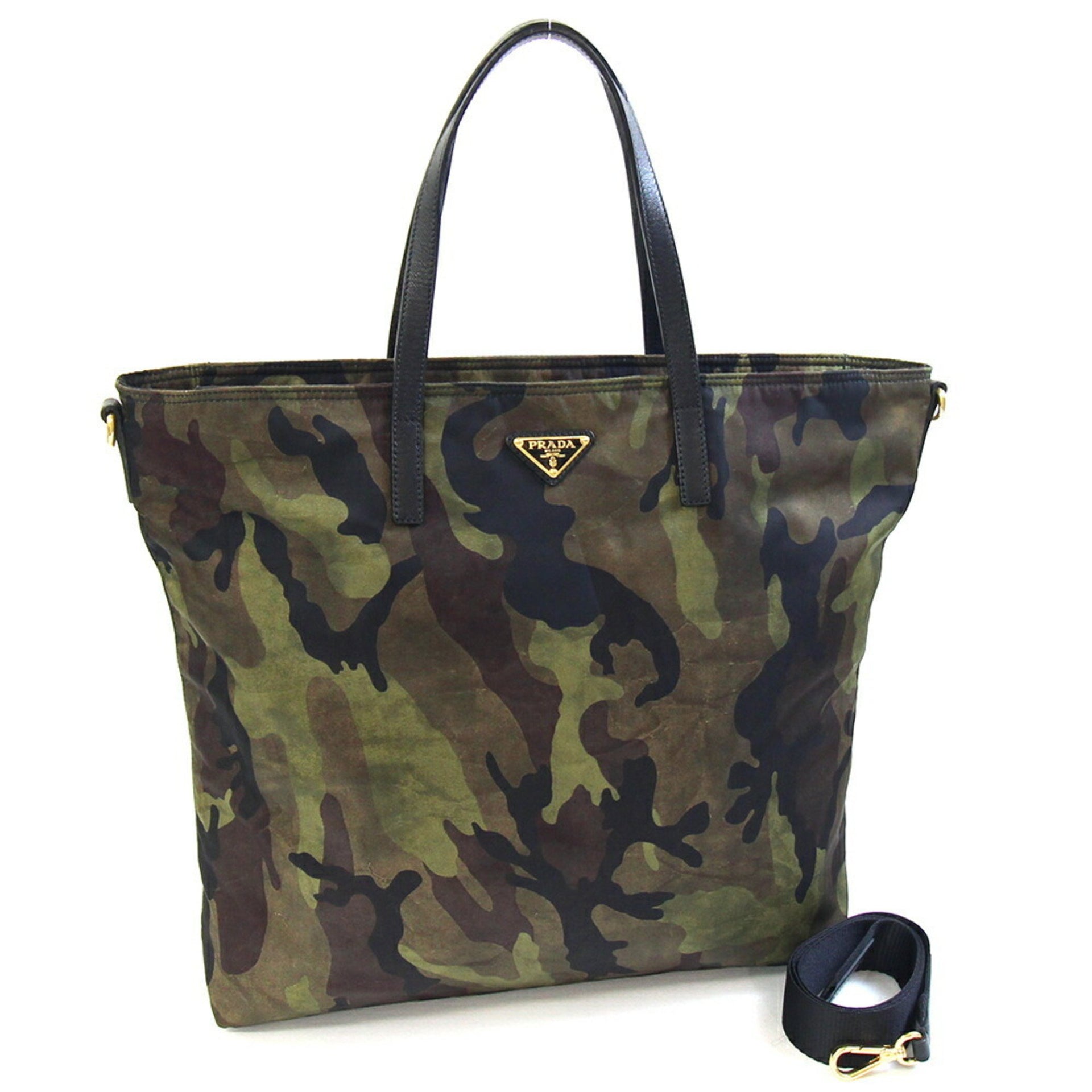 Prada Tote Bag B2600A Khaki Black Nylon Leather Shoulder Camouflage Women\'s Men\'s PRADA